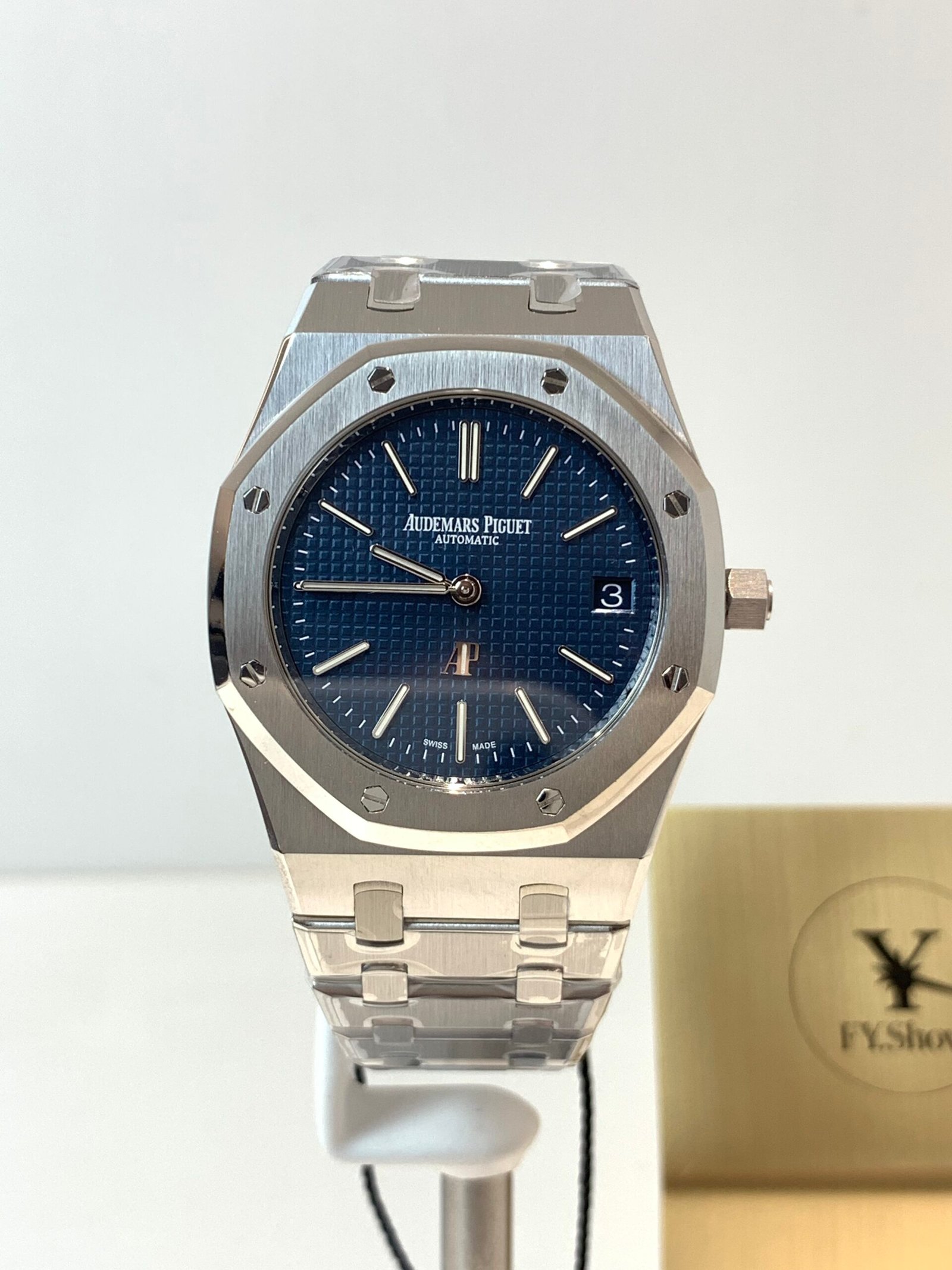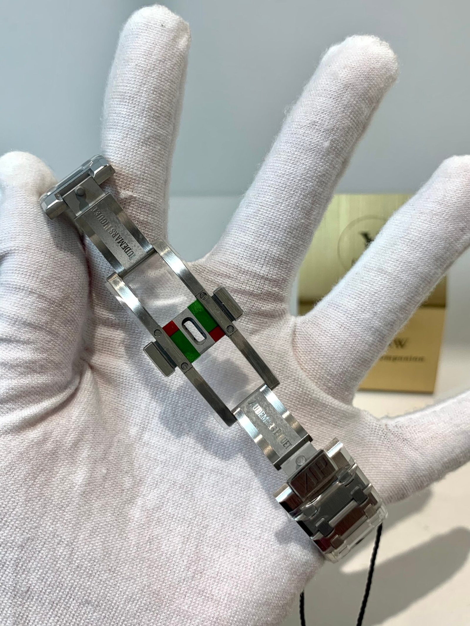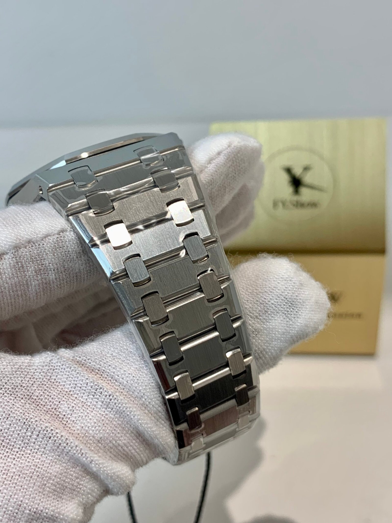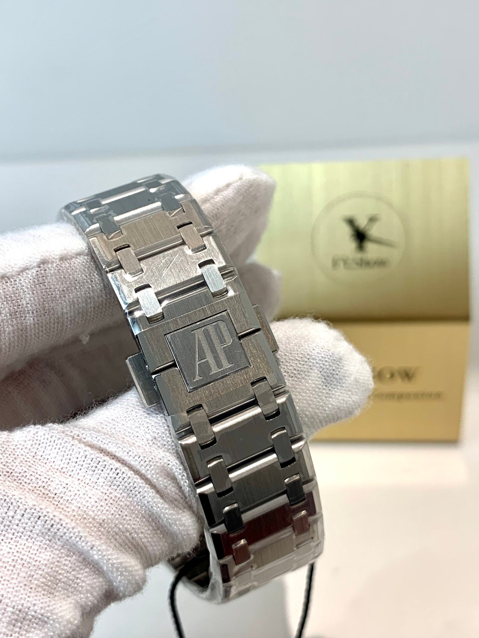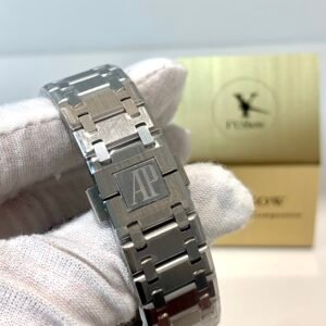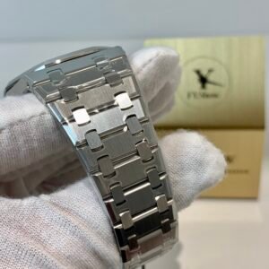APSF’s proprietary integrated steel bracelet is the gold standard for Royal Oak replicas. Every link is hand-articulated for a soft, fluid feel—no stiffness or rattling. The AP fold-over clasp is solid steel with precise locking and the correct engraved branding.