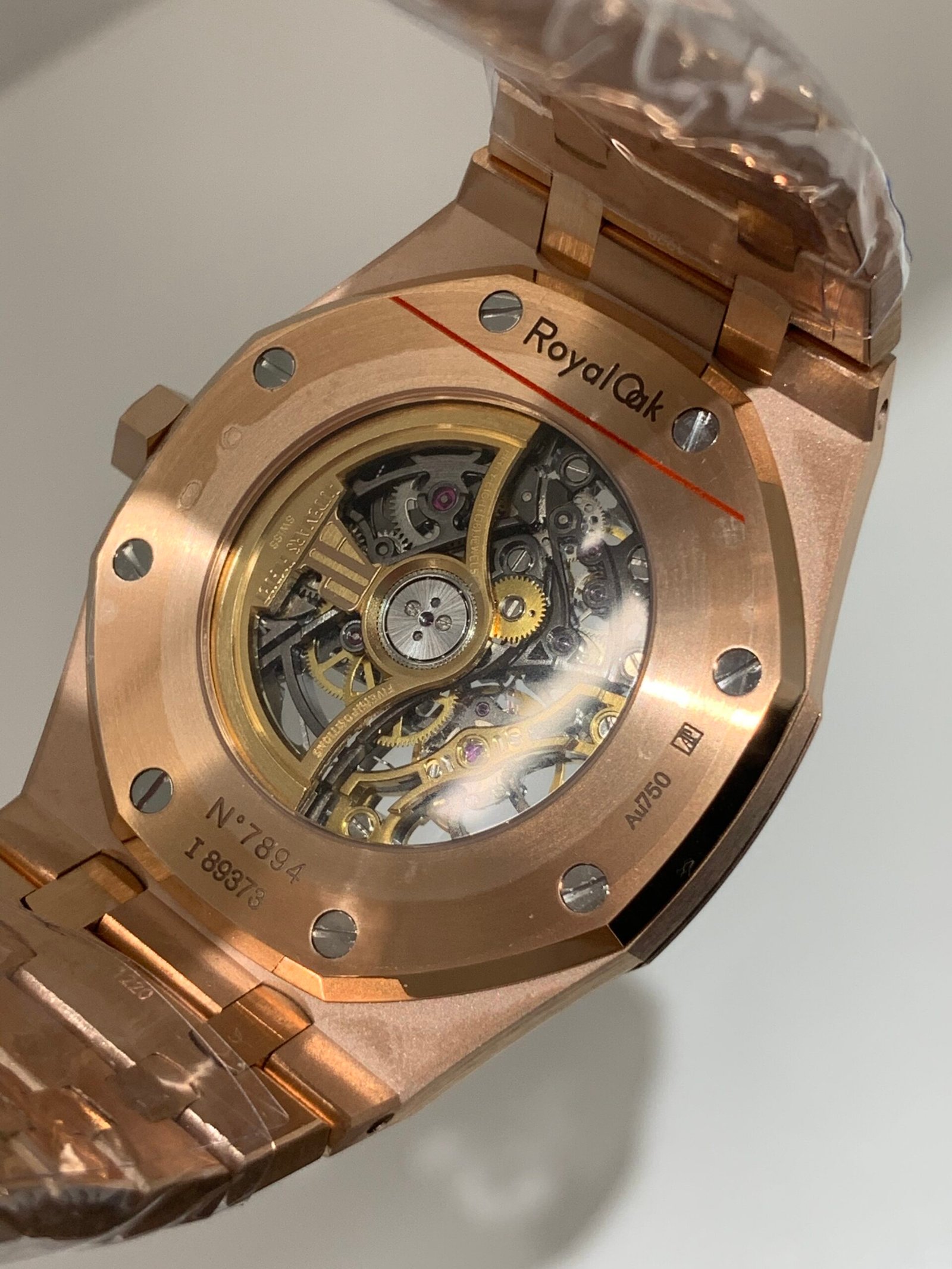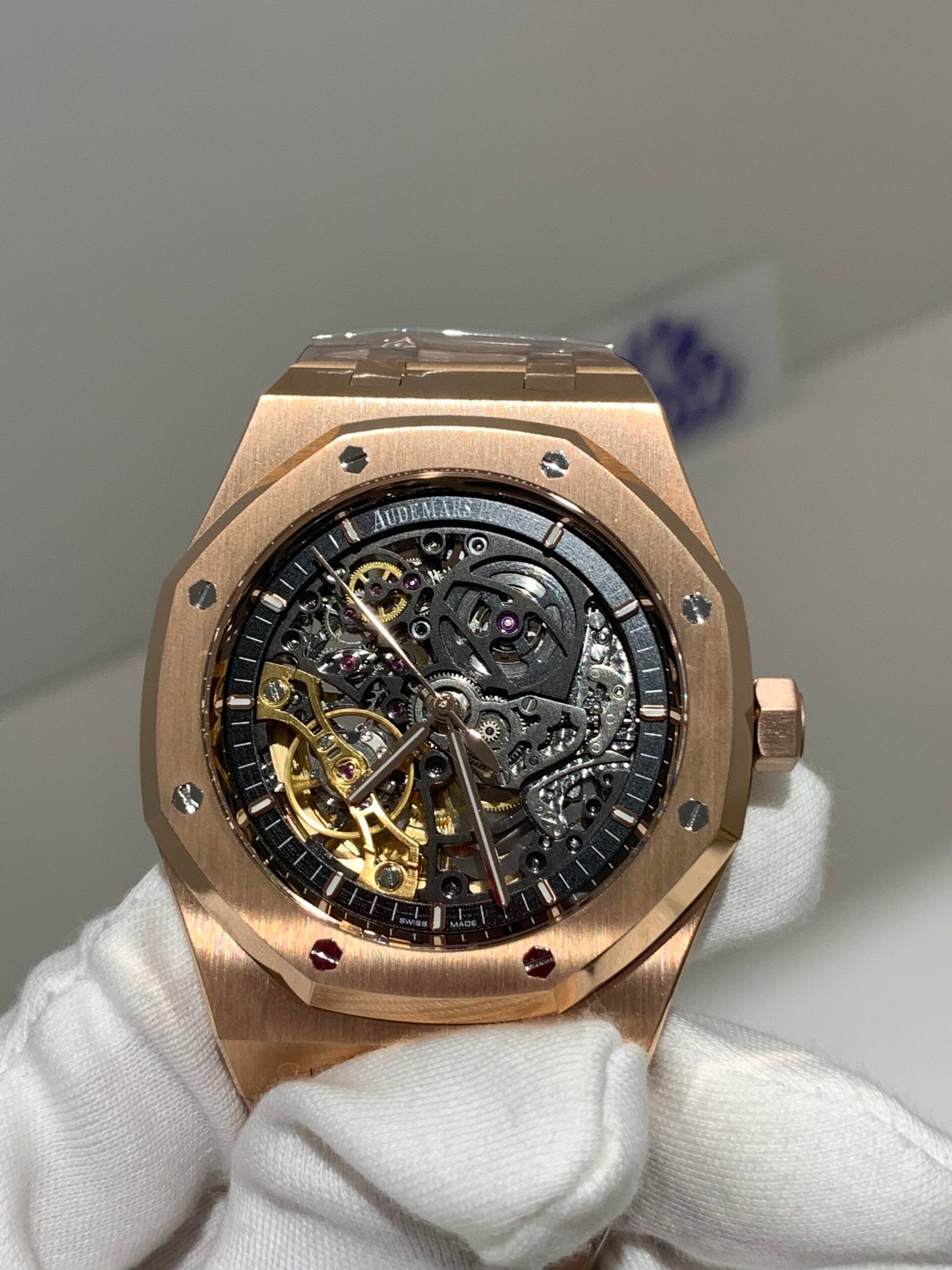 ✅ Rotor Spec: Signature skeletonized “Audemars Piguet” oscillating weight with perfect finishing, complementing the openworked dial aesthetic.