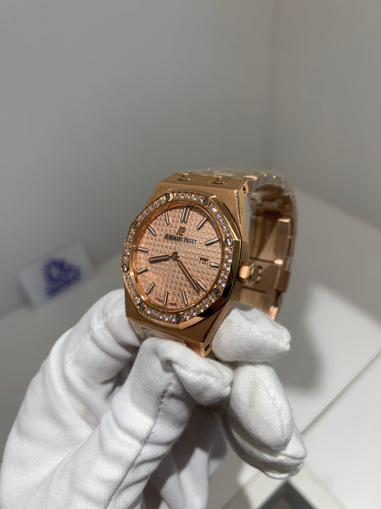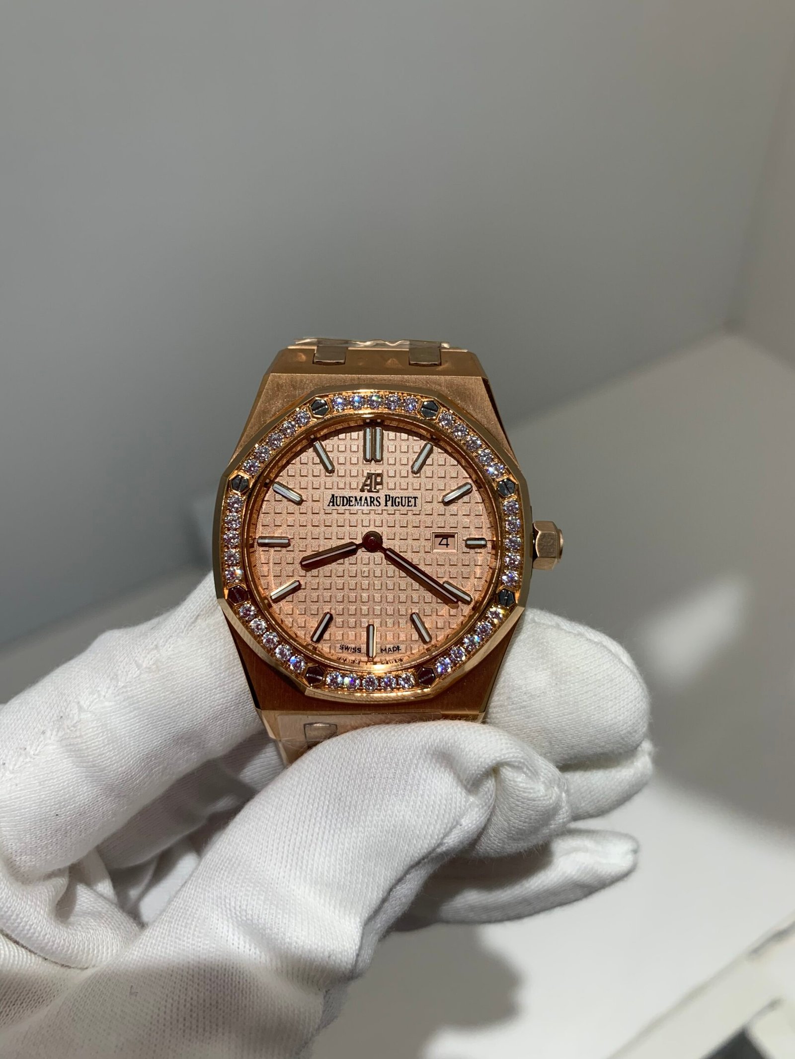 APSF Audemars Piguet Royal Oak Lady Quartz 67651OR.ZZ.1261OR.01 (Rose Gold Diamond Bezel White Dial)
