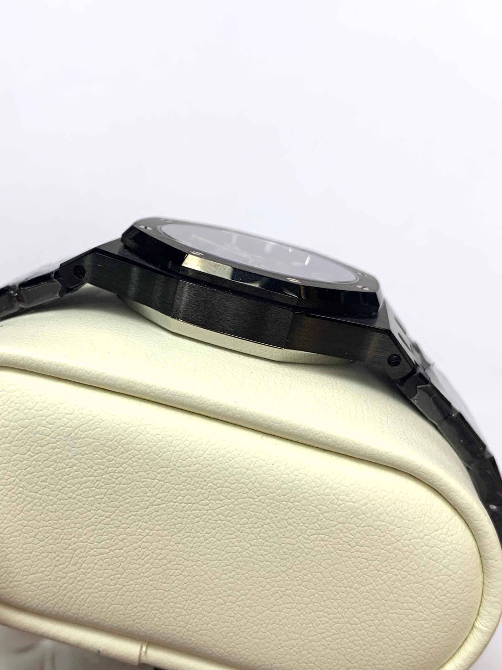Constructed from premium polished black ceramic. The case and integrated bracelet offer excellent scratch resistance with a deep, lustrous finish. The weight and balance are tuned to match the genuine wearing experience.