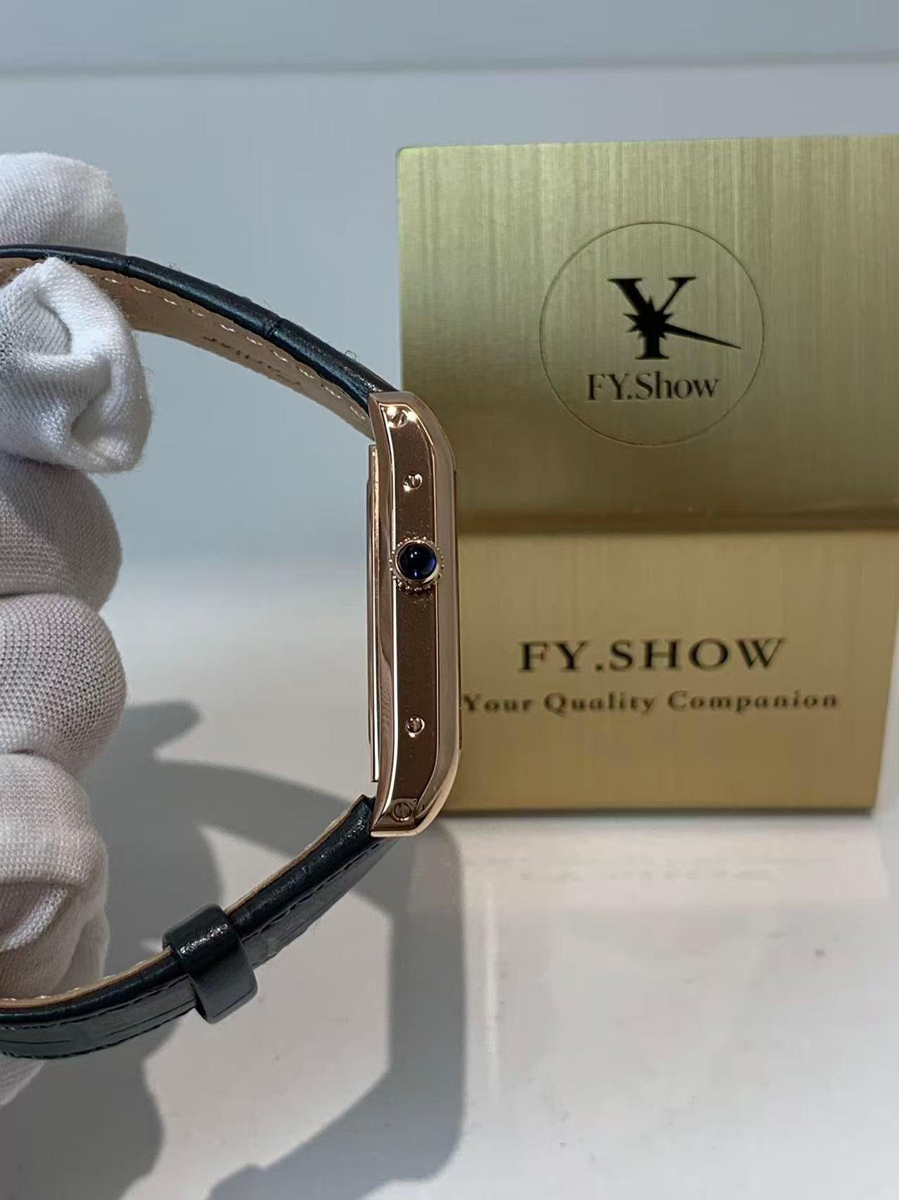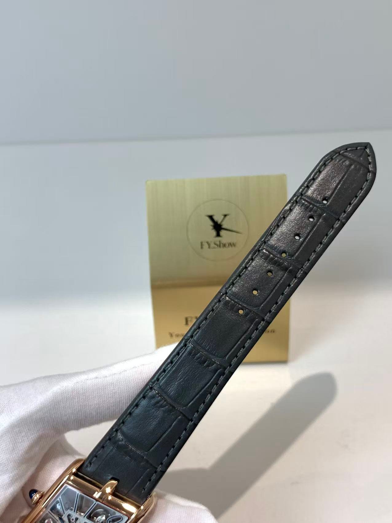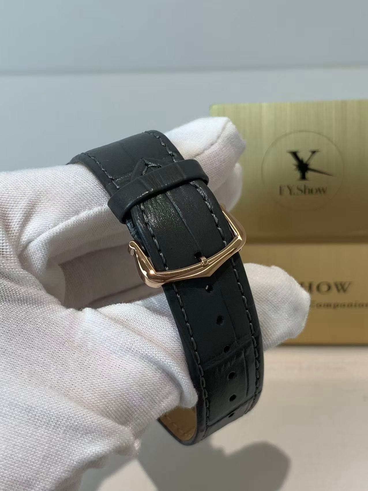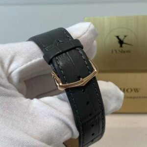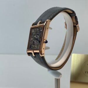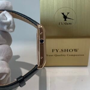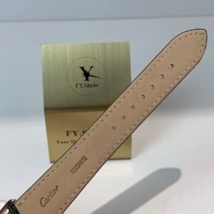 The engineering highlight: a fully functional quick-release strap mechanism that lets you swap straps without tools. The watch comes paired with a supple black alligator-embossed leather strap, matched to a rose gold-plated ardillon buckle engraved with the Cartier logo. The strap’s tapered design complements the asymmetric case, ensuring a comfortable, snug fit on the wrist—whether worn with formal attire or everyday casual wear.