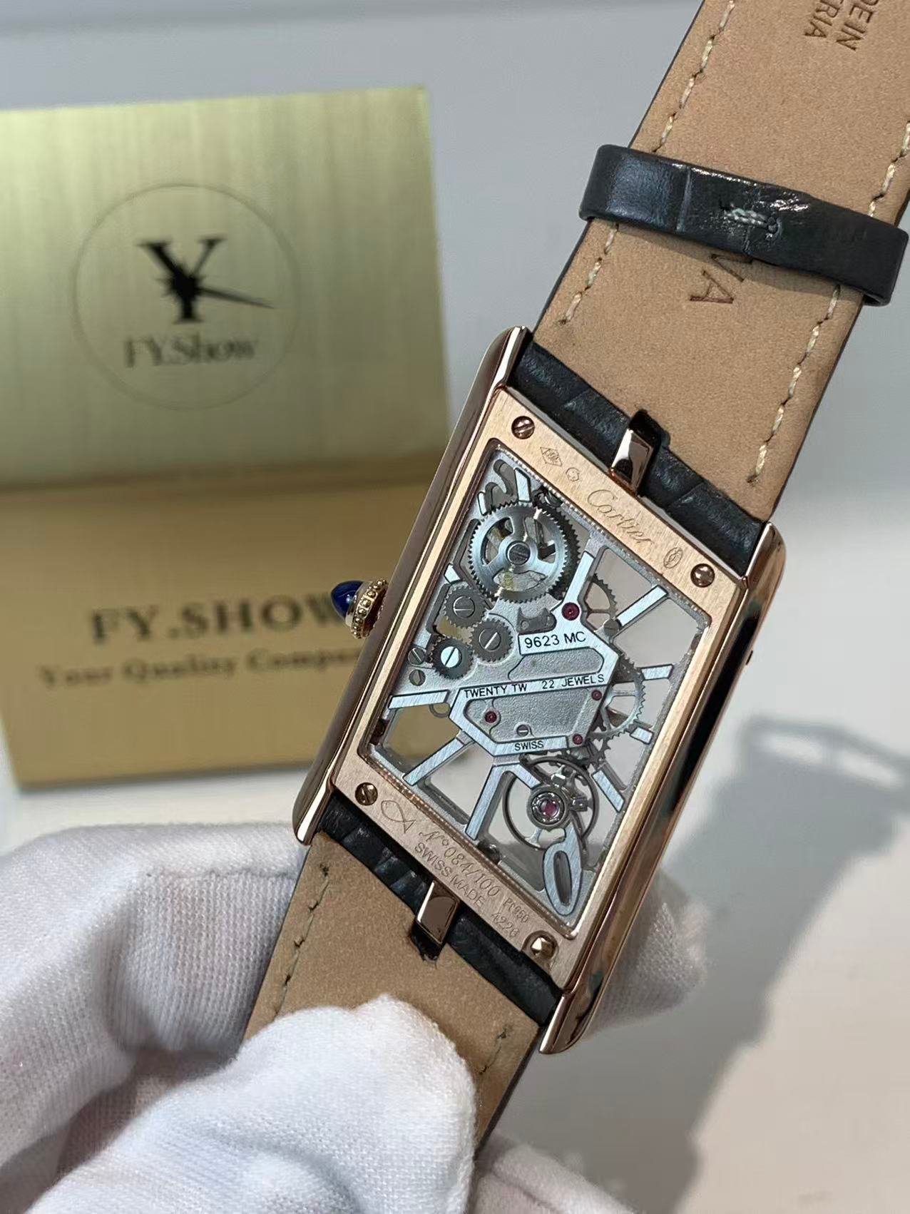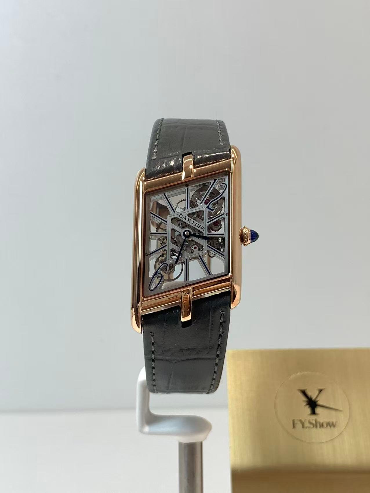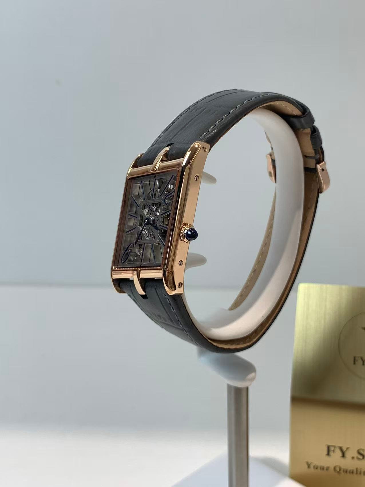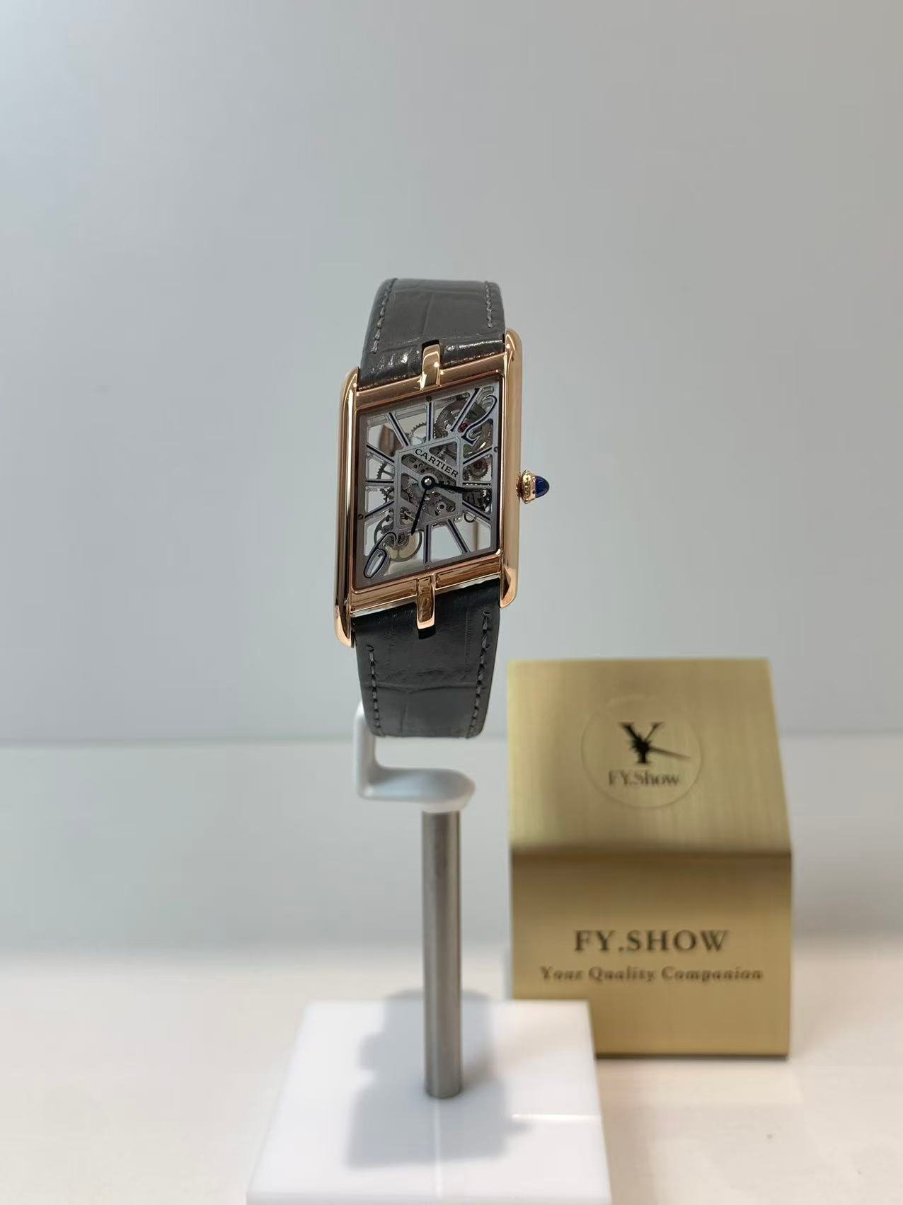 The engineering highlight: a fully functional quick-release strap mechanism that lets you swap straps without tools. The watch comes paired with a supple black alligator-embossed leather strap, matched to a rose gold-plated ardillon buckle engraved with the Cartier logo. The strap’s tapered design complements the asymmetric case, ensuring a comfortable, snug fit on the wrist—whether worn with formal attire or everyday casual wear.
