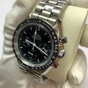 VSF has replicated the legendary 42mm Speedmaster case with exacting precision, capturing the original’s robust yet elegant profileOMEGA®. The lugs feature the correct brushing pattern, while the chronograph pushers offer the iconic “click” feel that has been tested in space. The integrated steel bracelet includes solid end links and the historic Omega folding clasp, providing a secure fit and authentic weight that pays homage to the watch worn on the moon.
