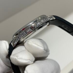 3KF is famous for its “soft” strap feel, exclusive to the Aquanaut series. The integrated rubber strap features the iconic waffle pattern, offering exceptional flexibility and comfort that avoids the stiffness found in cheaper replicas. Features the Aquanaut fold-over clasp with hidden deployment.