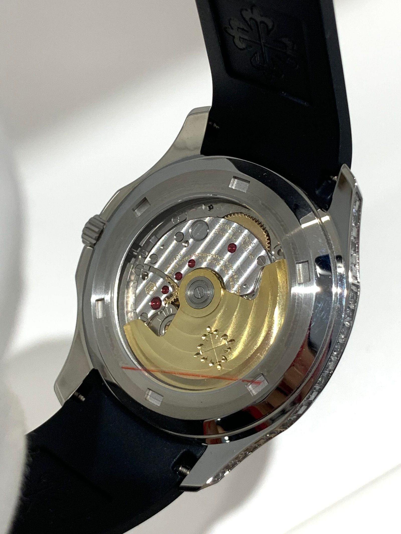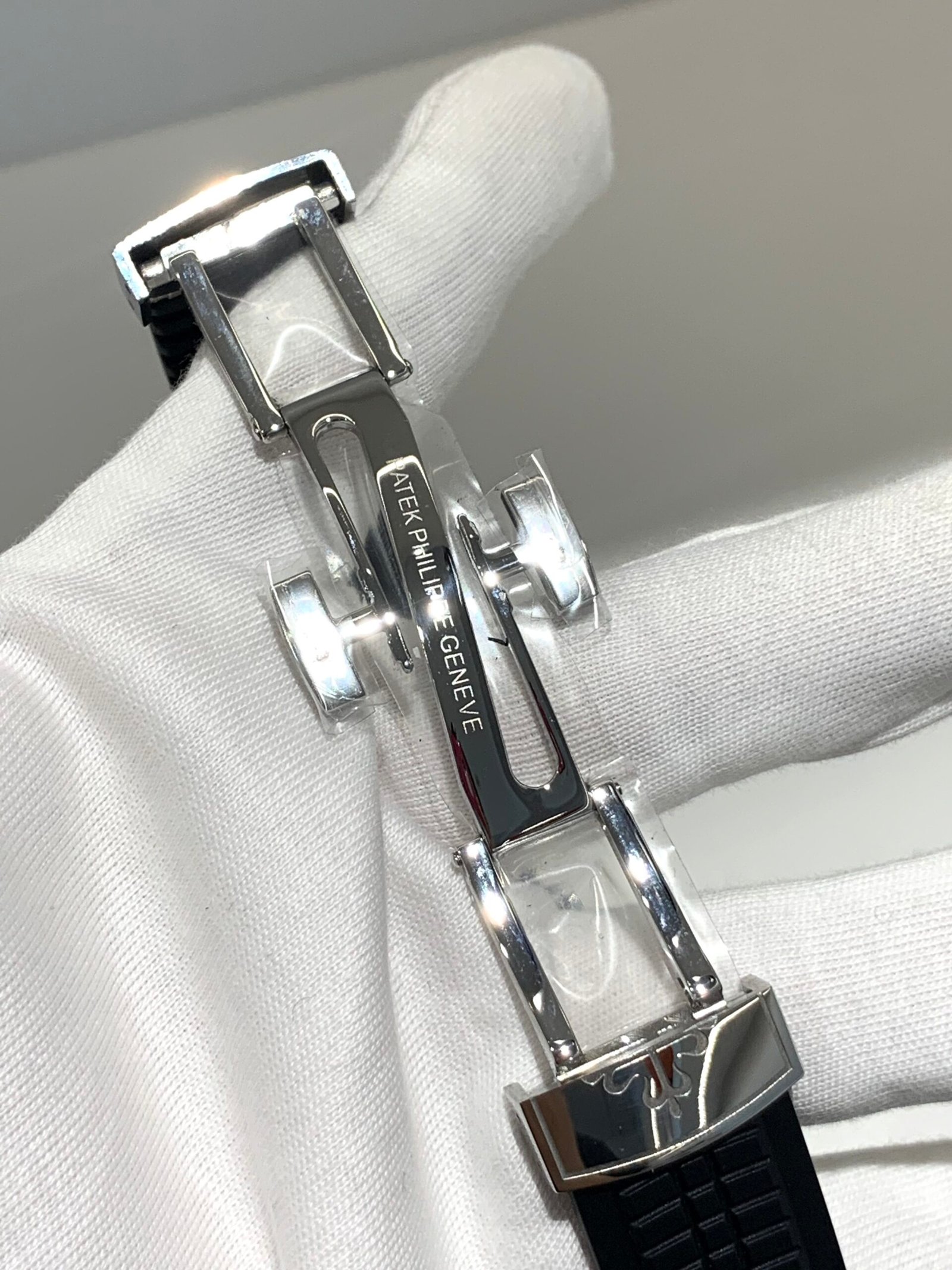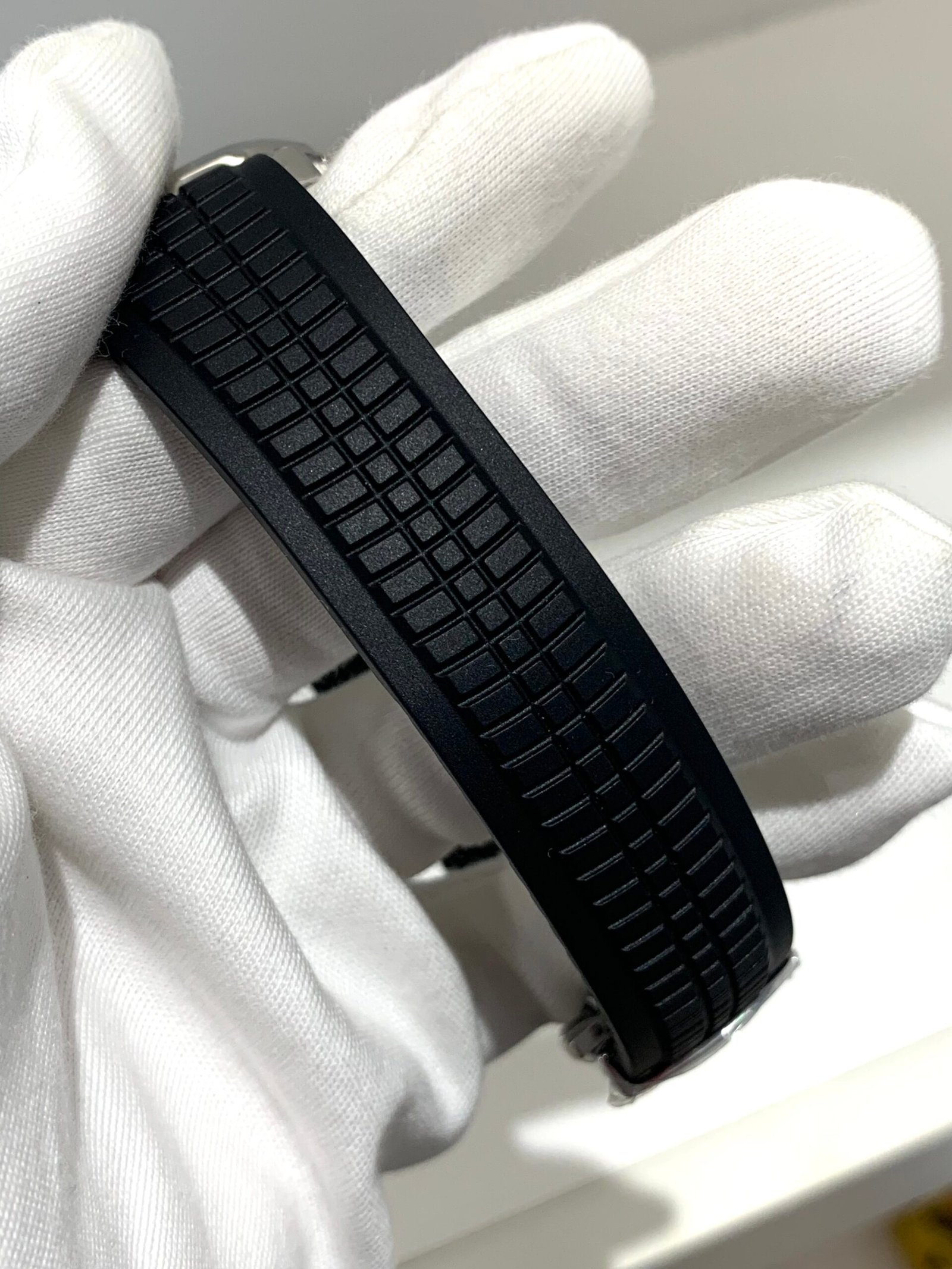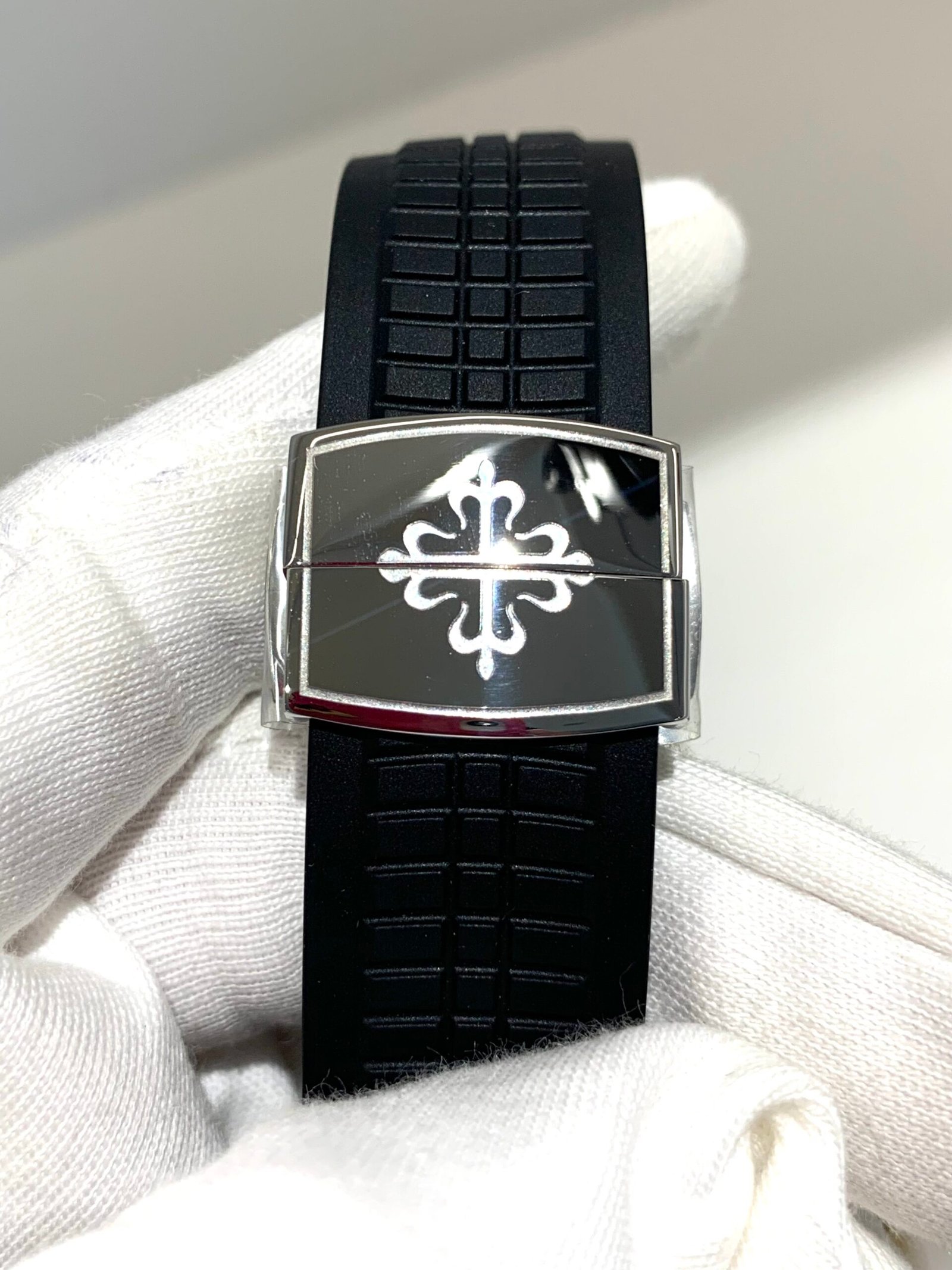 The embossed surface features the correct “Tropical” texture, a signature of the Aquanaut series. The deep black tone boasts a subtle matte finish that avoids glare, exuding understated luxury in any lighting.