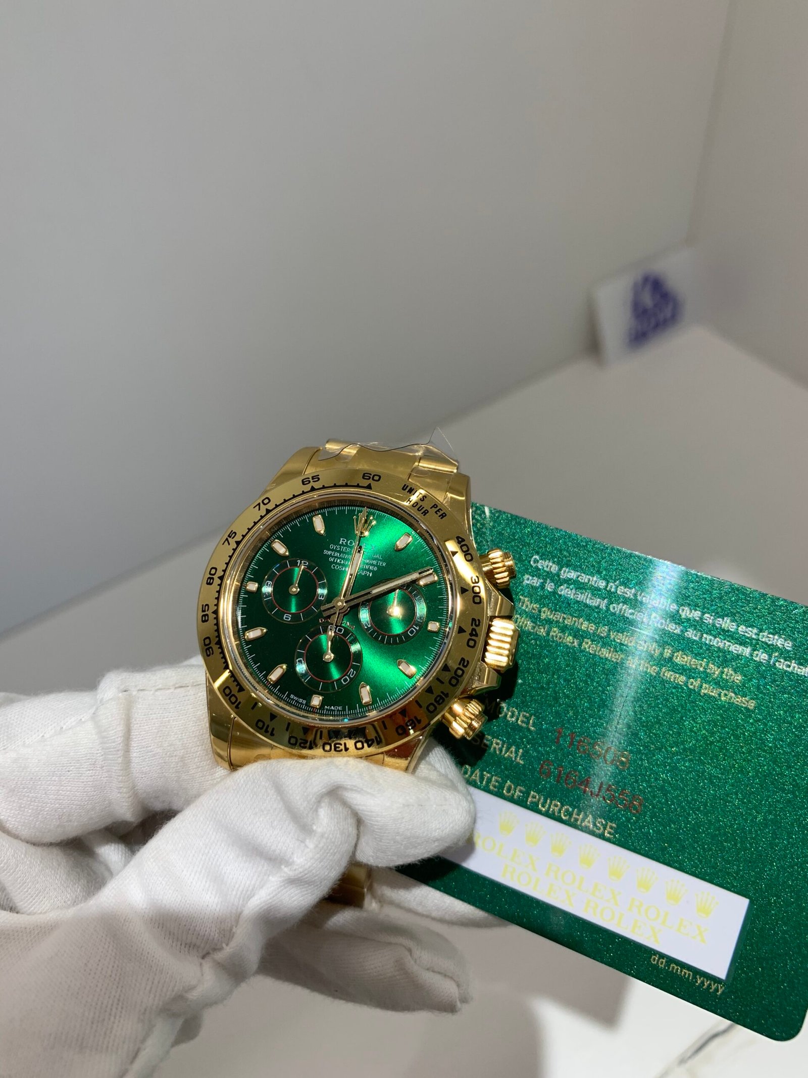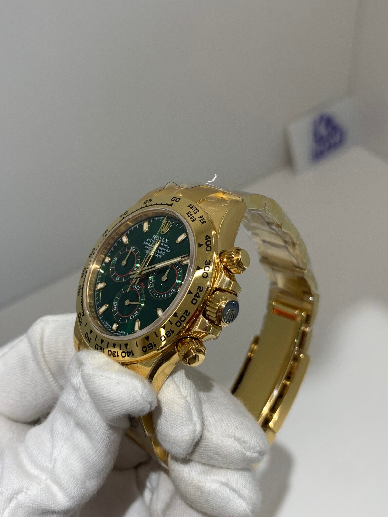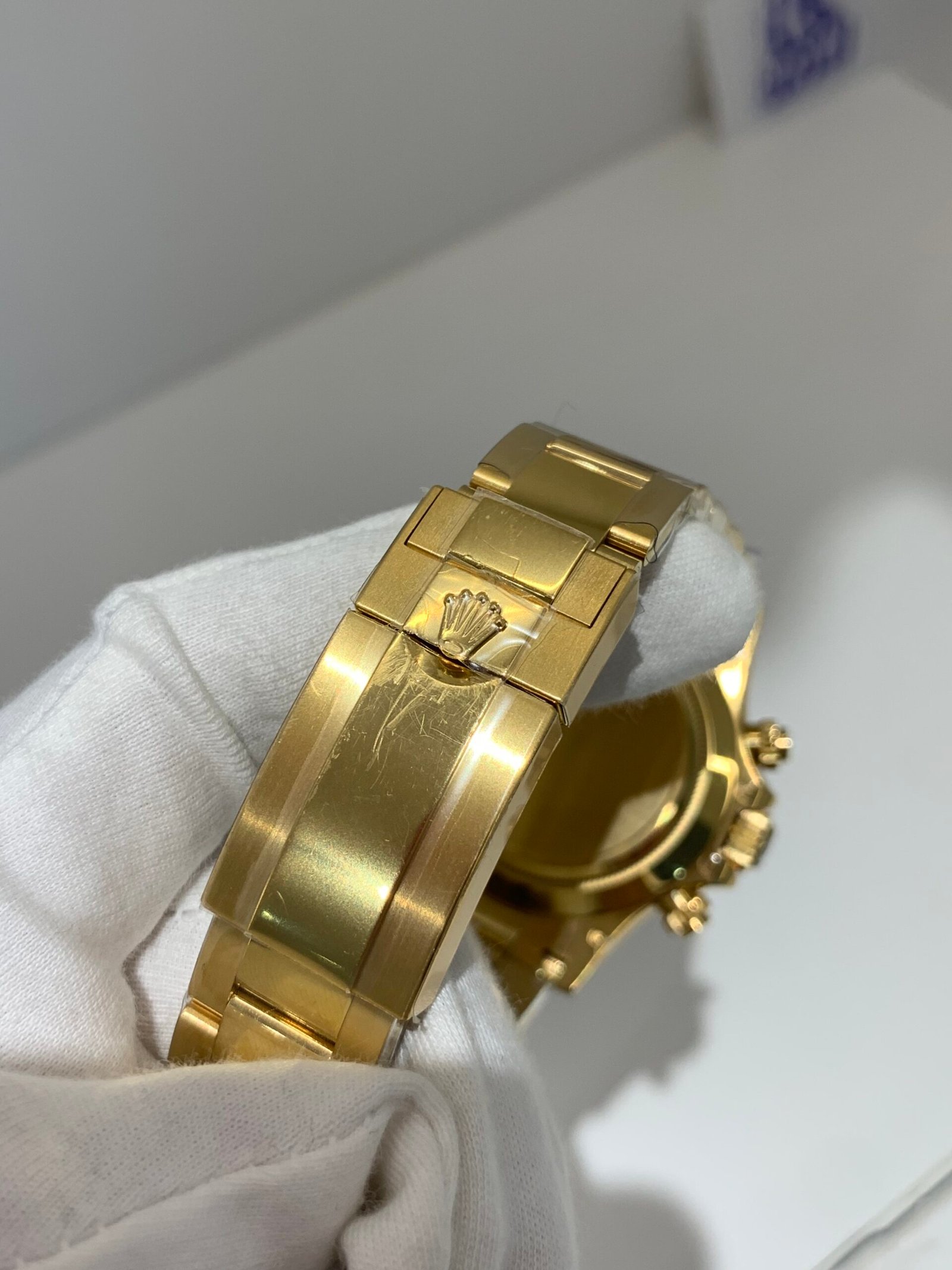 A legendary luxurious sporty chronograph masterpiece powered by the true-to-gen VS4130 movement, delivering flawless chronograph functionality and featuring the elegant champagne dial with diamond hour markers and black sub-dials, paired with a polished 18K yellow gold case/bezel and Oyster bracelet that embodies Rolex Daytona’s racing heritage and royal precious metal luxury.