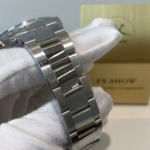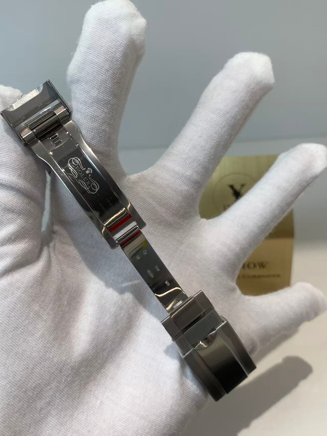 Solid 18k White Gold Case & Bracelet. The case features Rolex’s signature brushed lugs transitioning to polished sides; the Oyster three-row bracelet has a smooth taper, finished to perfection with tight, consistent links that wear comfortably over time. The chronograph pushers are polished, with the classic Rolex tactile feedback—firm, no wobble.