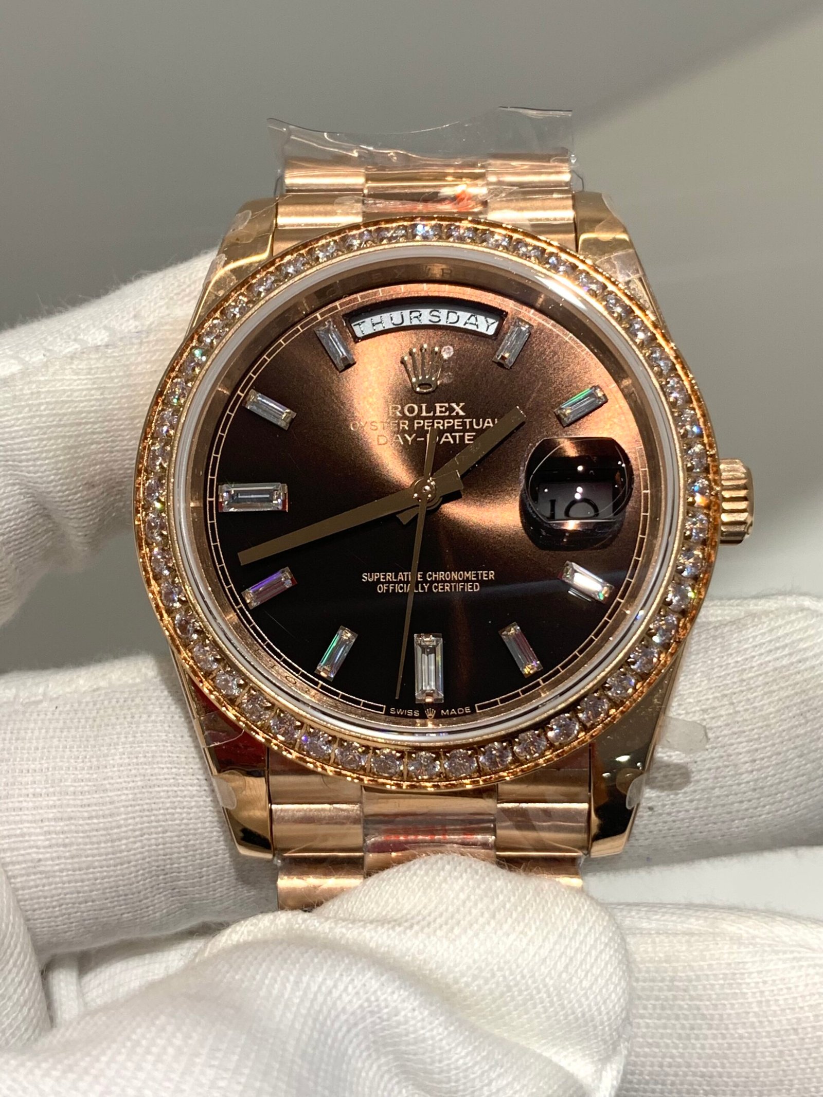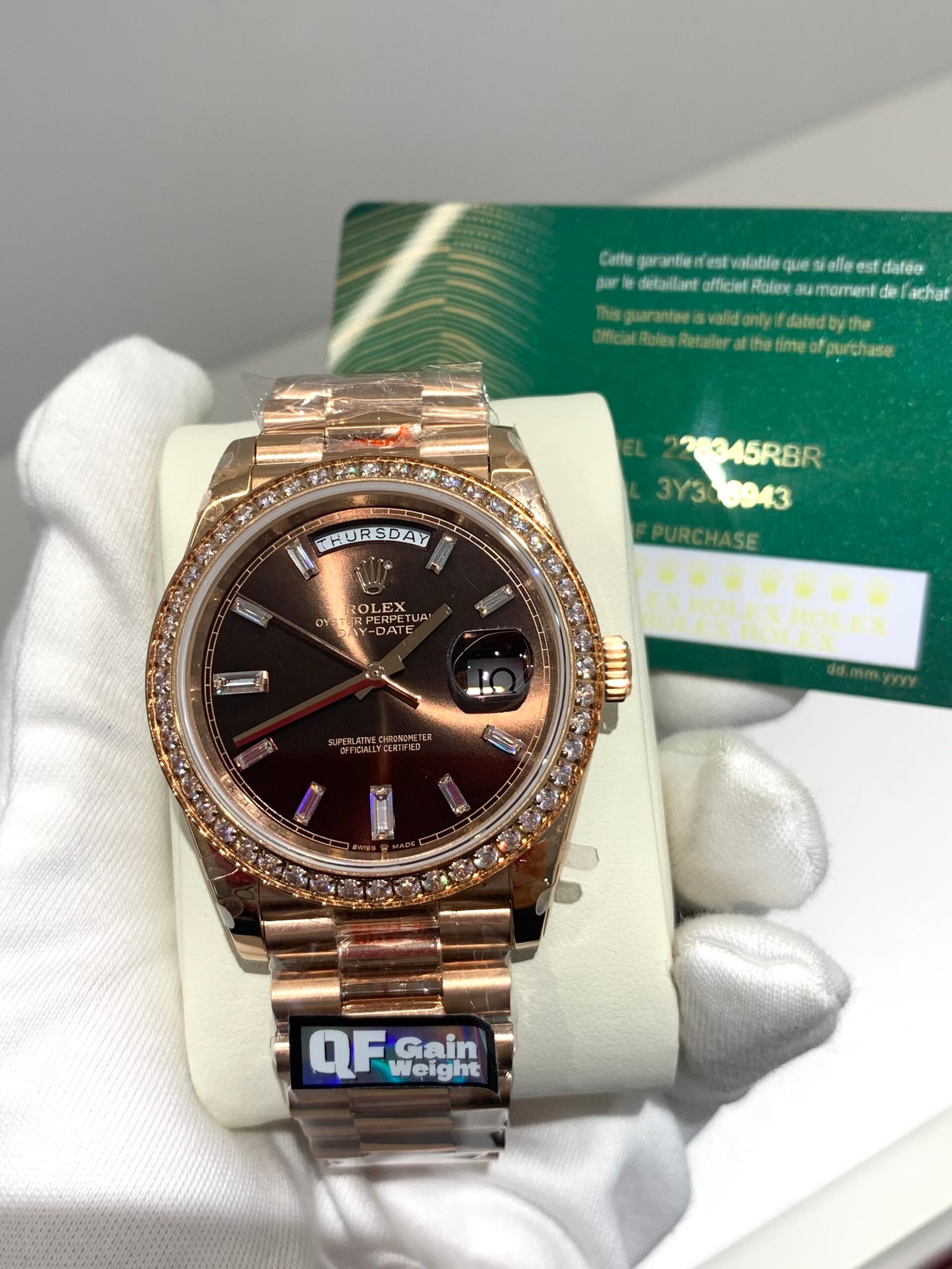 This is the game-changer collectors have been waiting for. Unlike earlier iterations that used a modified movement, this version is equipped with the specific VS3235 automatic movement— the upgraded iconic caliber exclusive to genuine modern Day-Date 40 models. The result? Smooth, instant-jump day and date adjustments with no lag, longer power reserve, and mirroring the genuine handling experience perfectly.
