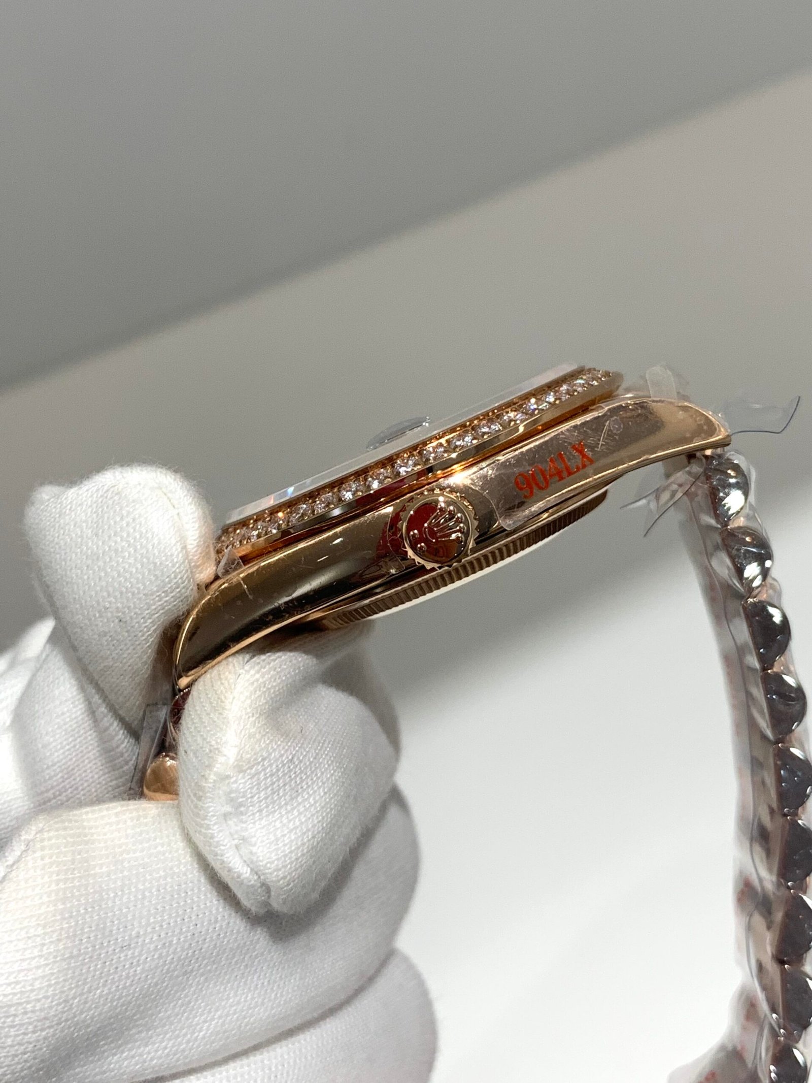 Crystal Clarity VSF is unrivaled in crystal production. The sapphire is incredibly clear, with no milky ring effect (white edge) and correct internal AR coating, making the unique smoky green dial and Everose gold hour markers pop in any lighting, while featuring the genuine’s iconic Cyclops lens for date magnification.