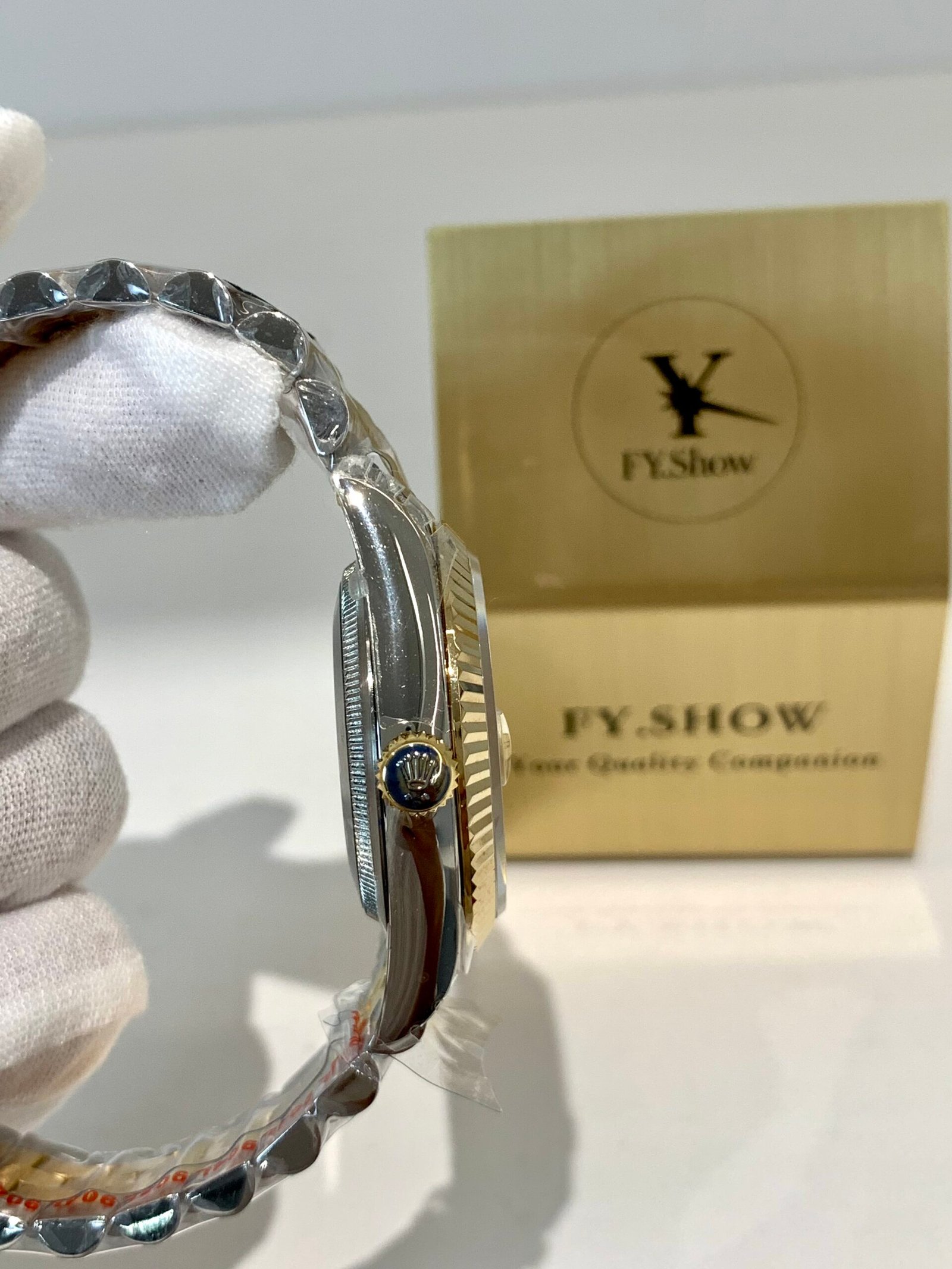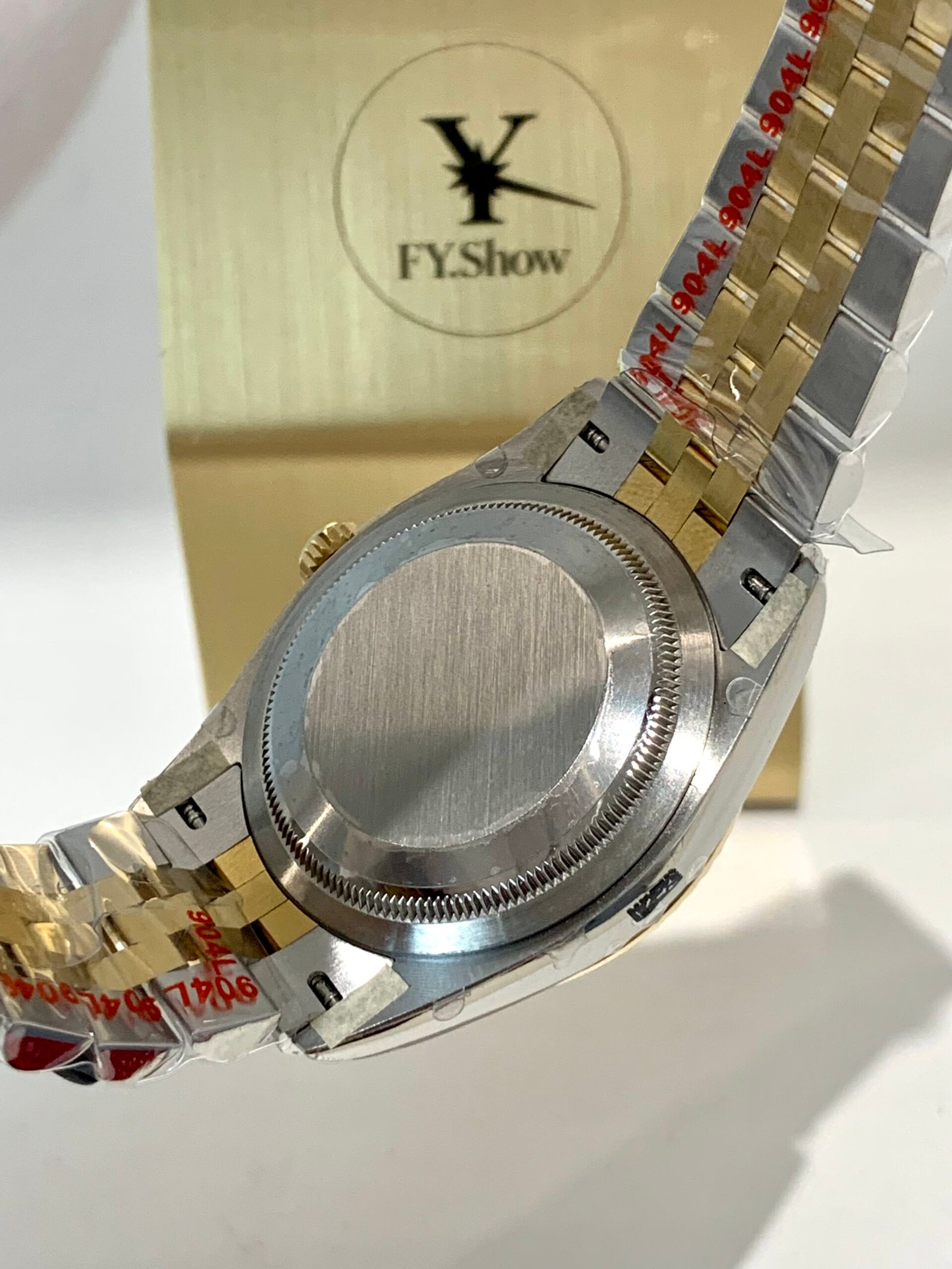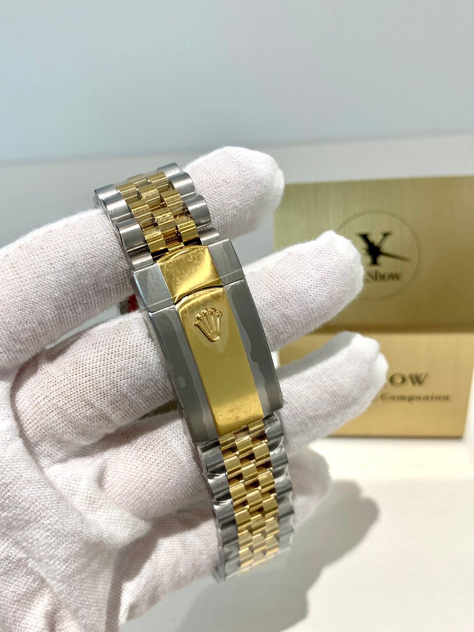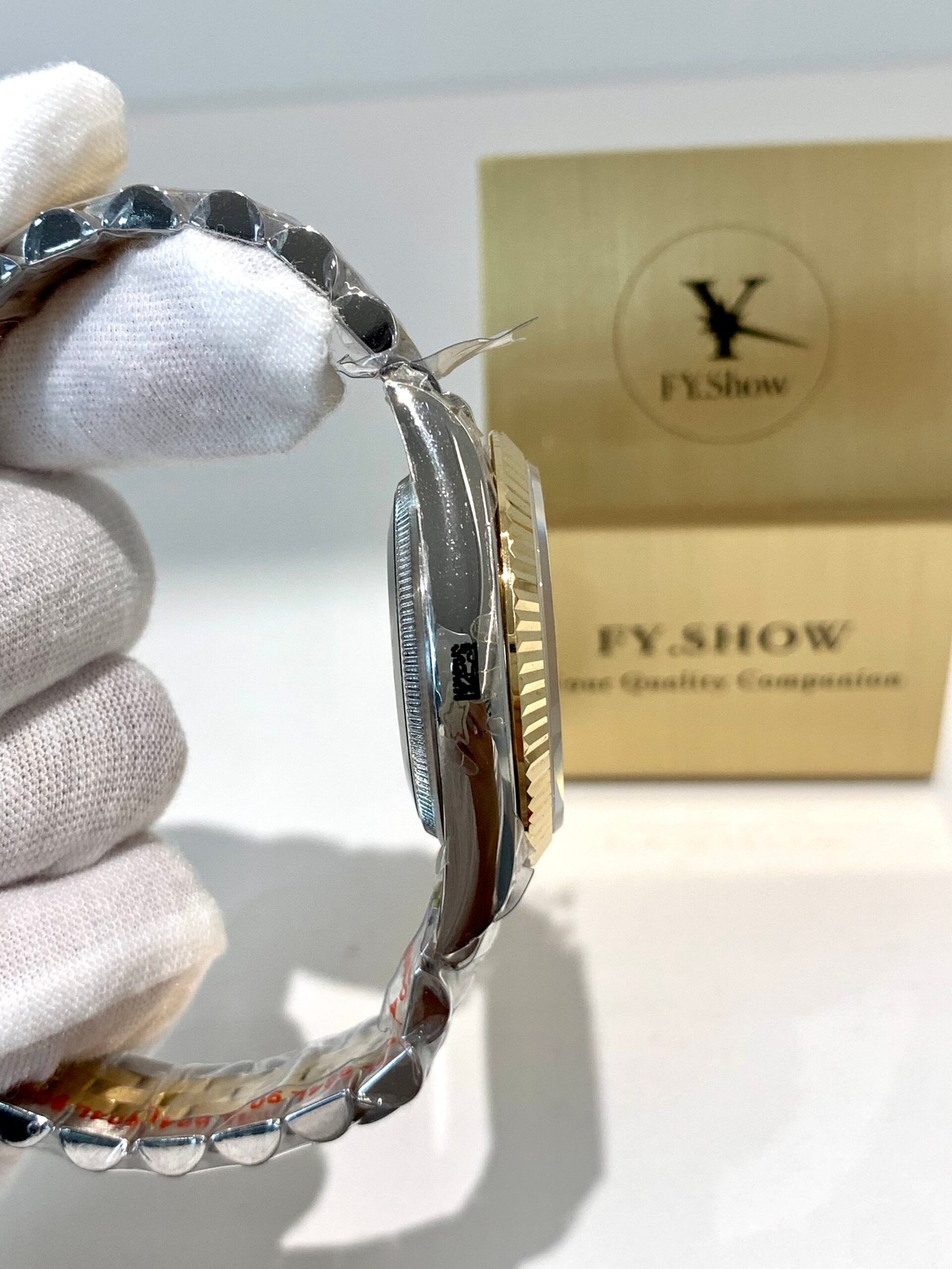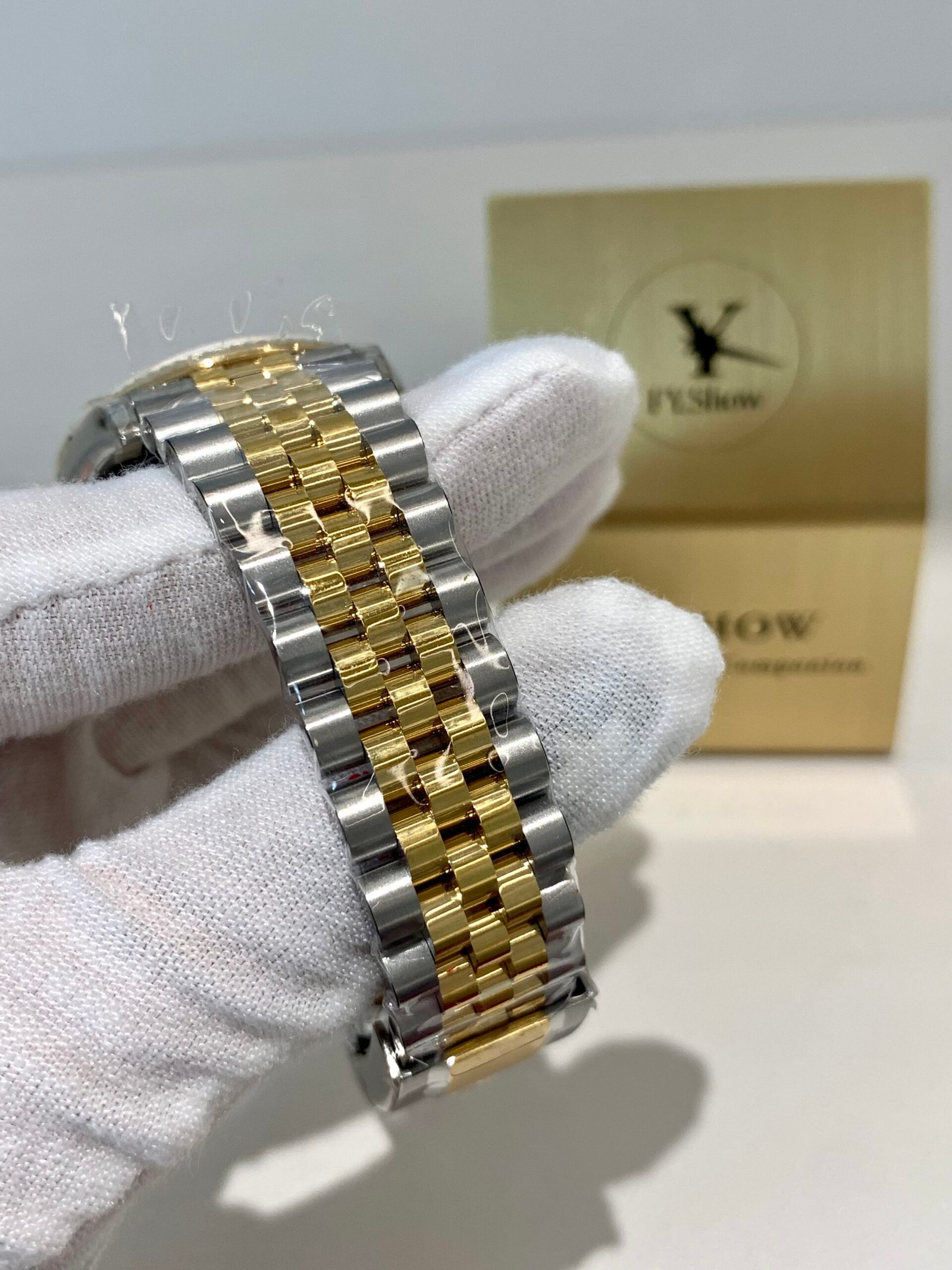 Top-tier case machining from VSF. Solid 904L steel case with mirror-polished 18K gold fluted bezel, precision brushed lugs, and seamless transition between gold and steel. The Jubilee bracelet is buttery smooth with perfect taper and tight tolerances, wearing exactly like the genuine on wrist.