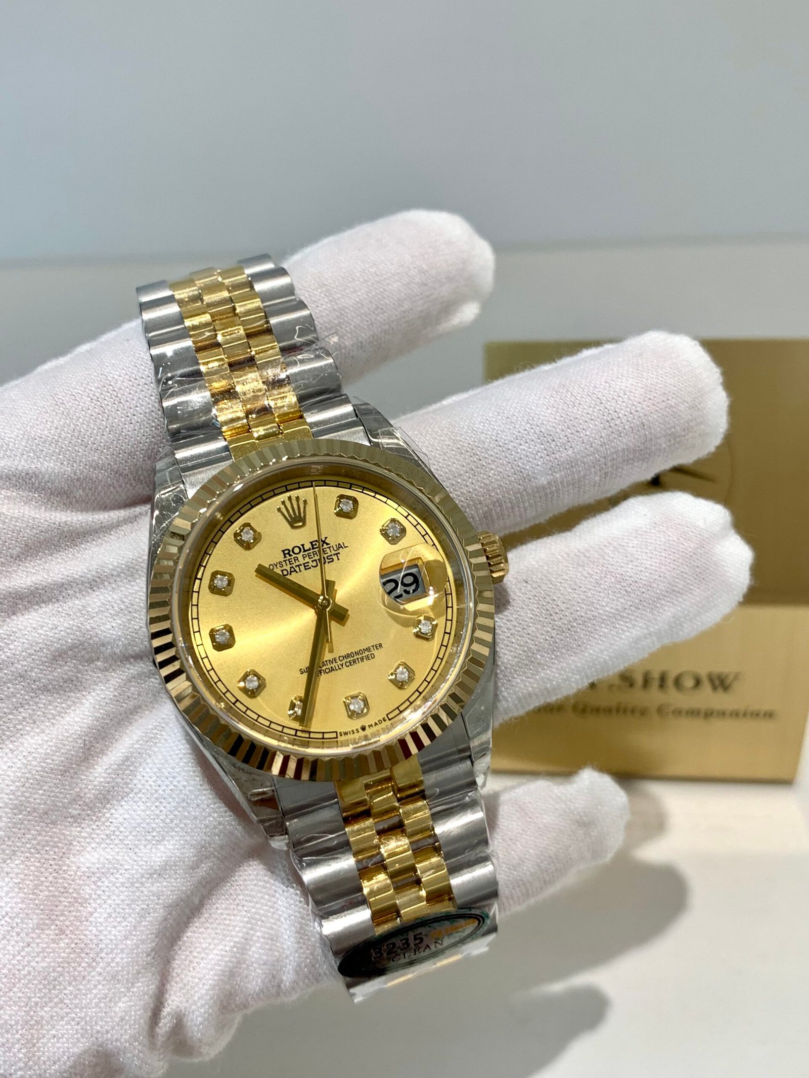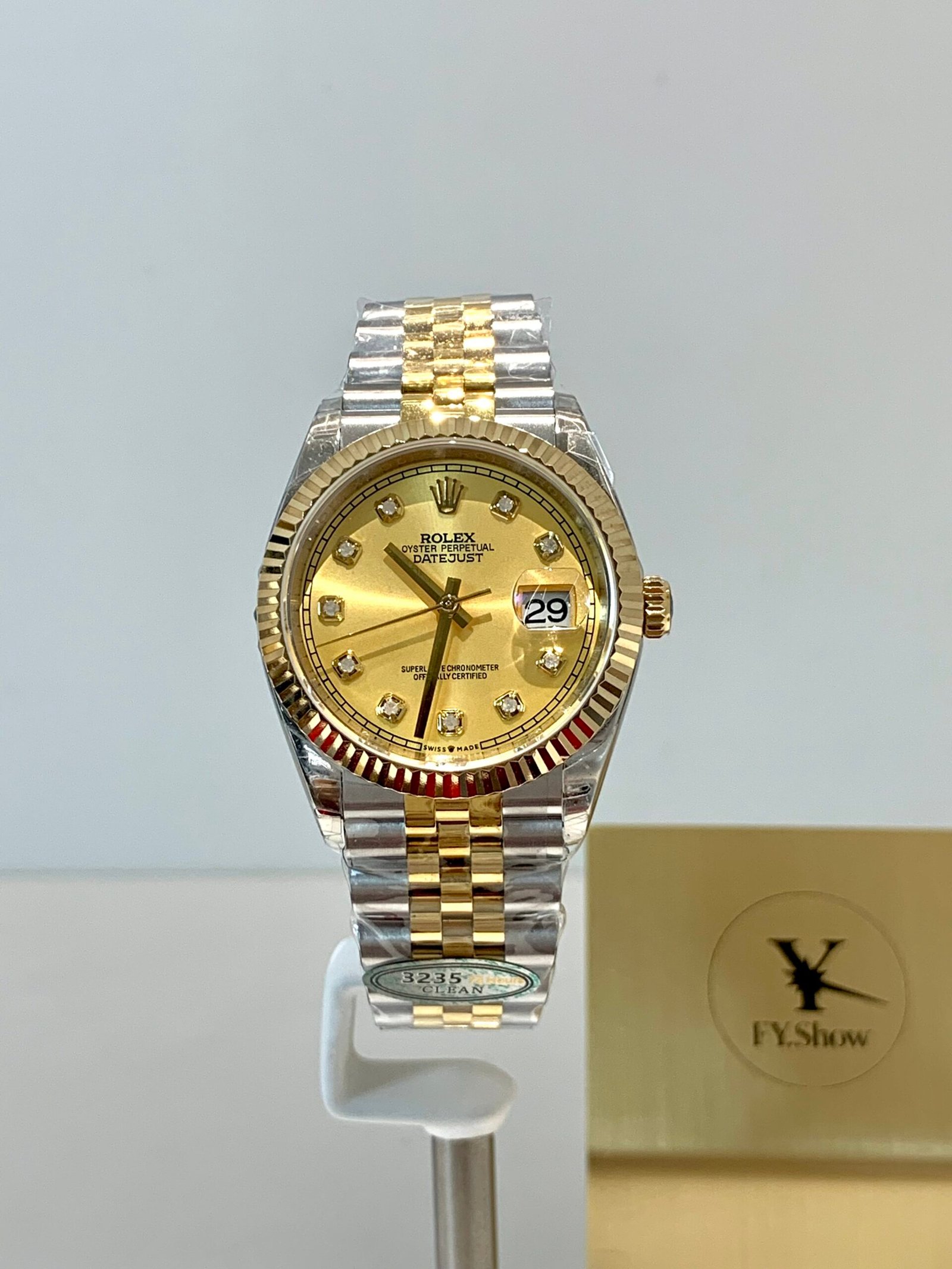 This is the definitive two-tone Datejust collectors demand. Ditching unstable generic movements, this version runs on the dedicated VS3235 automatic movement for real quickset date, correct 3-position crown, and zero “ghost date” issues. Every function, every click, every texture matches the genuine Rolex 3235 experience.