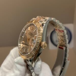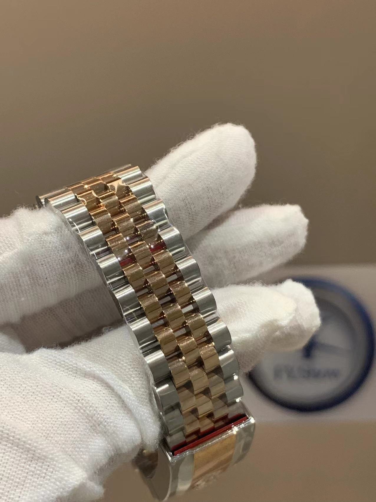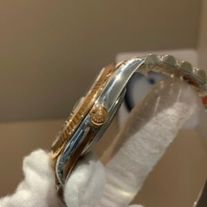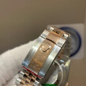 A hallmark of Datejust elegance—VSF’s Everose gold fluted bezel is meticulously crafted with sharp, even grooves that catch light beautifully. The polished finish matches the genuine’s luxurious appearance, distinguishing it from inferior steel-only replicas. VSF uses high-quality Everose gold plating that resists tarnishing and maintains its warm rose hue over time.
