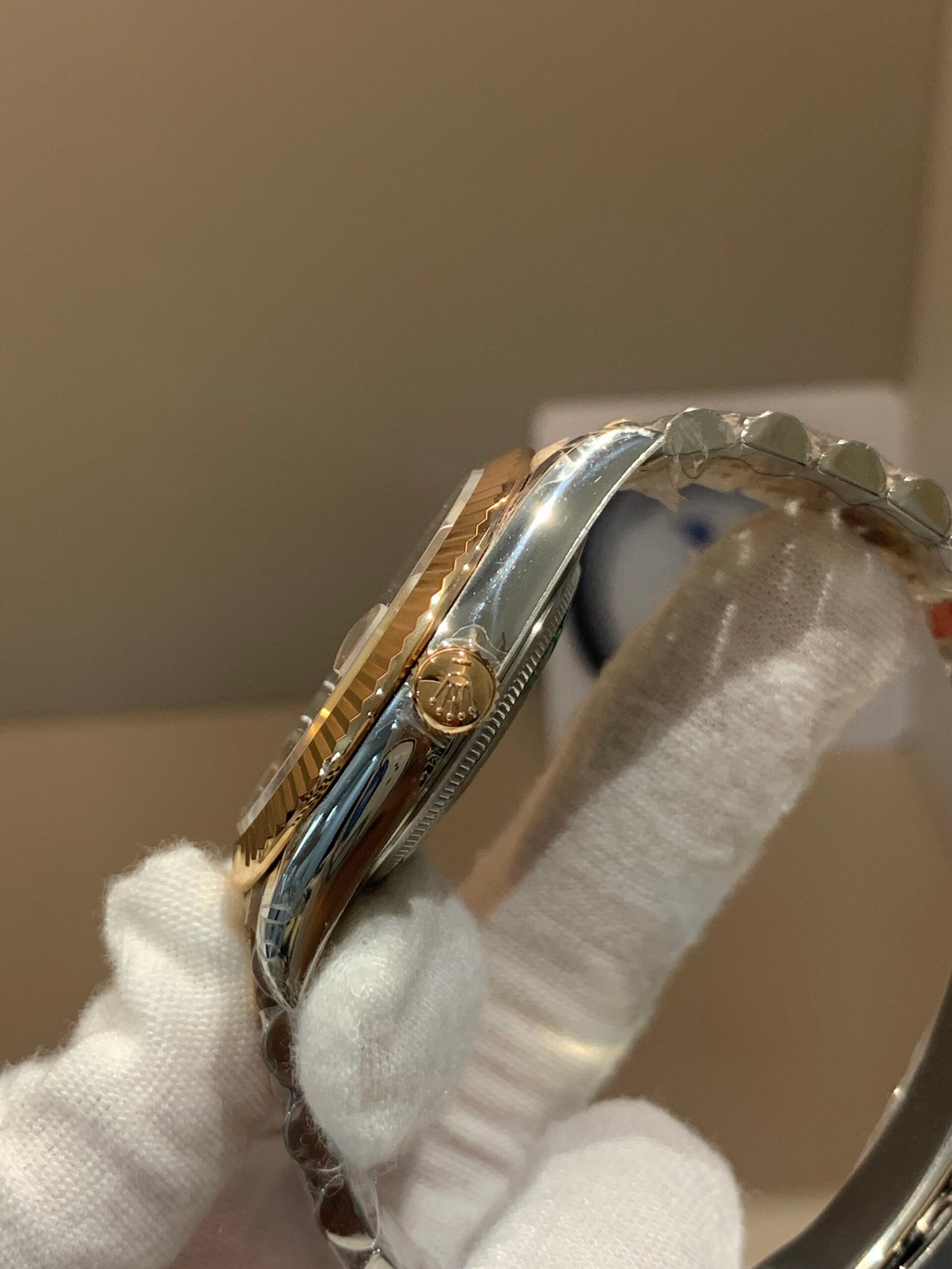 - Bezel: 18ct Everose gold fluted design—VSF’s plating process ensures color consistency with genuine Rolex Everose gold