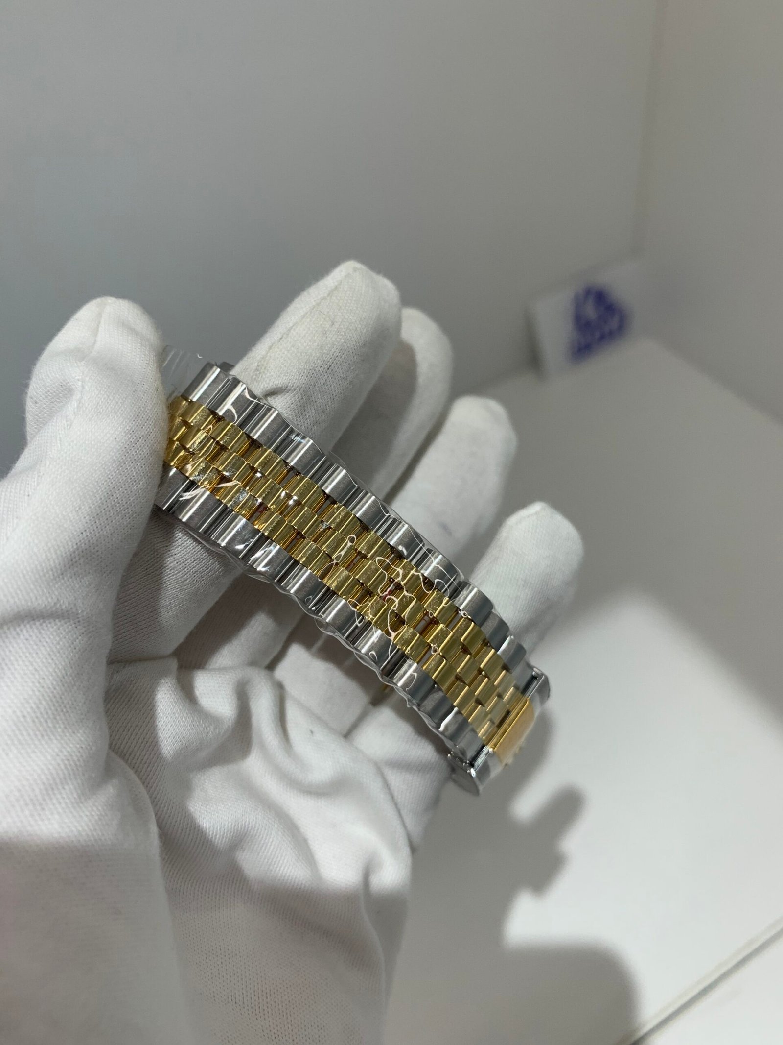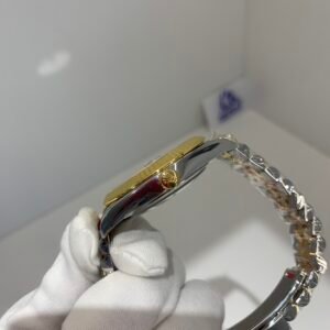 VSF’s case craftsmanship remains unmatched. The 41mm case is precision‑machined from solid 904L stainless steel, with a flawless 18K yellow gold plating replicating the warm luster of genuine Rolesor. The signature fluted (triplock) bezel is mirror‑polished to perfection, and the Jubilee bracelet features solid, seamless links with a flawless taper, delivering an identical feel and weight to the genuine article on the wrist劳力士.