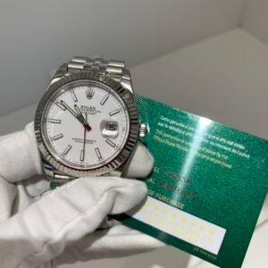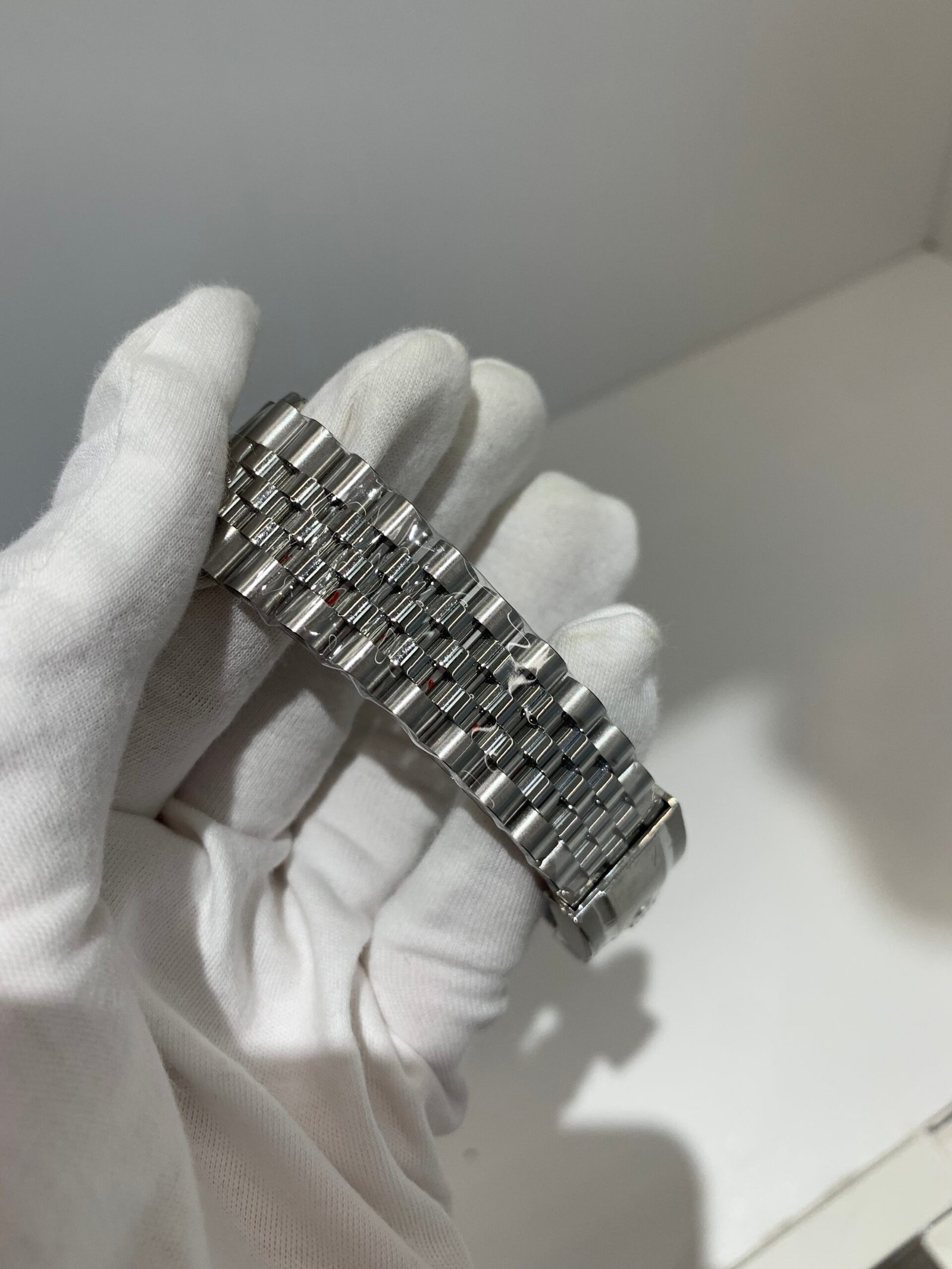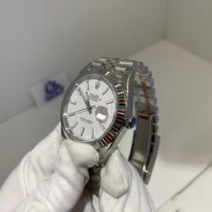 Polished Fluted SteelA classic fluted bezel, a signature design element of the Datejust series, perfectly polished to a mirror shine. Each flute is precisely cut to match the genuine’s proportions, maintaining the correct curvature relative to the mid-case, framing the silver dial without distraction, highlighting the dial’s soft luster while retaining the classic elegance of the Datejust 41.