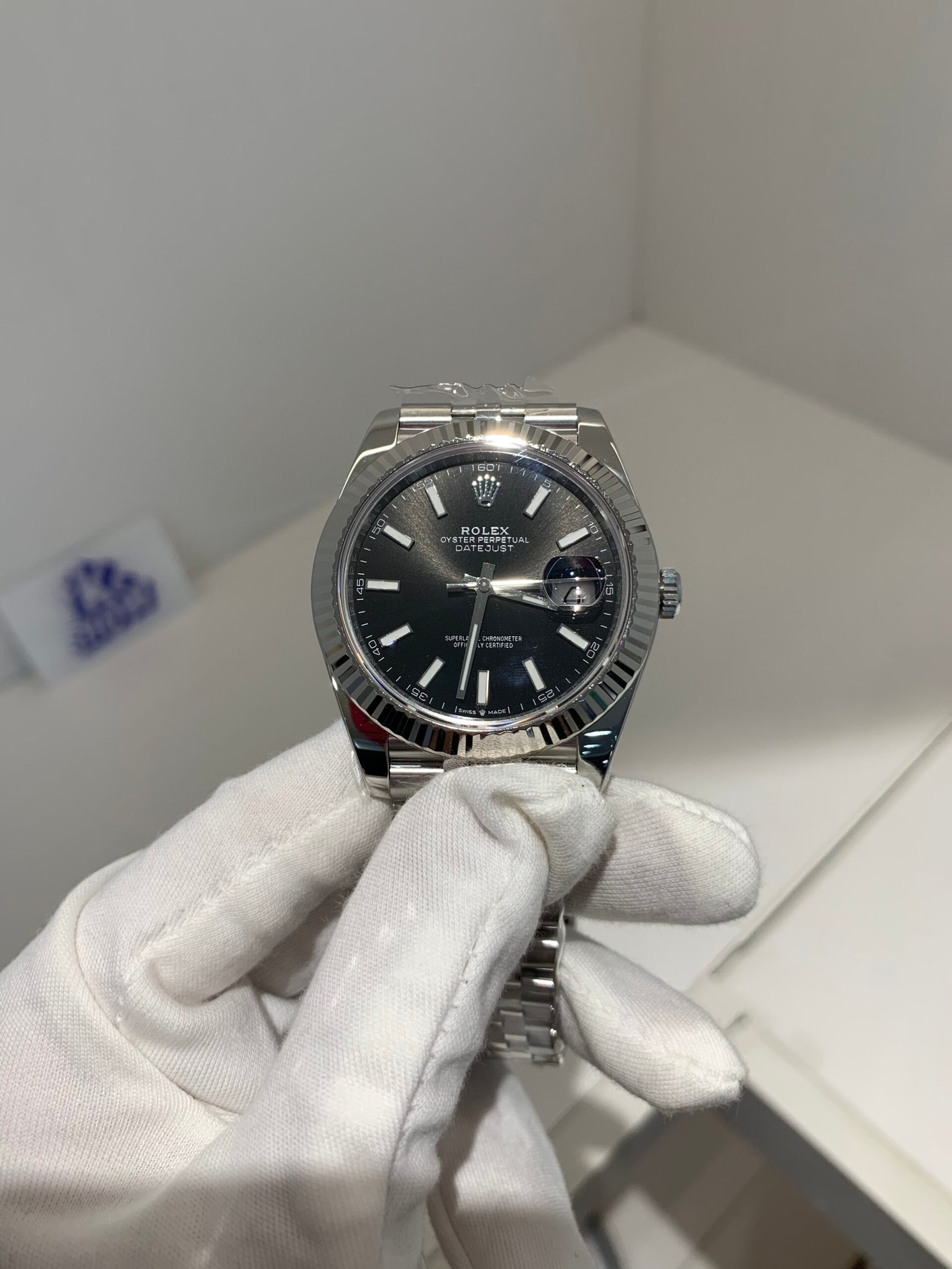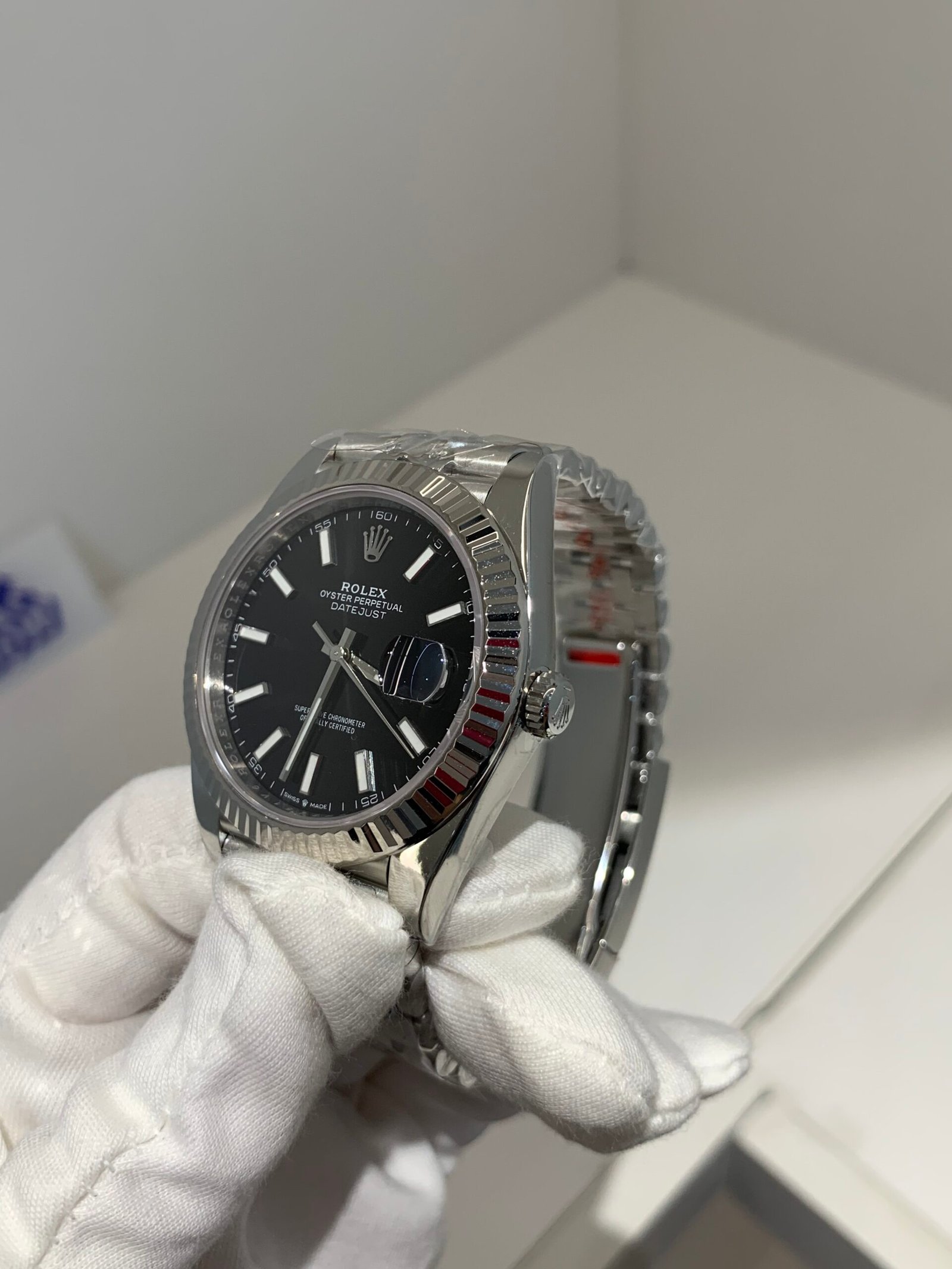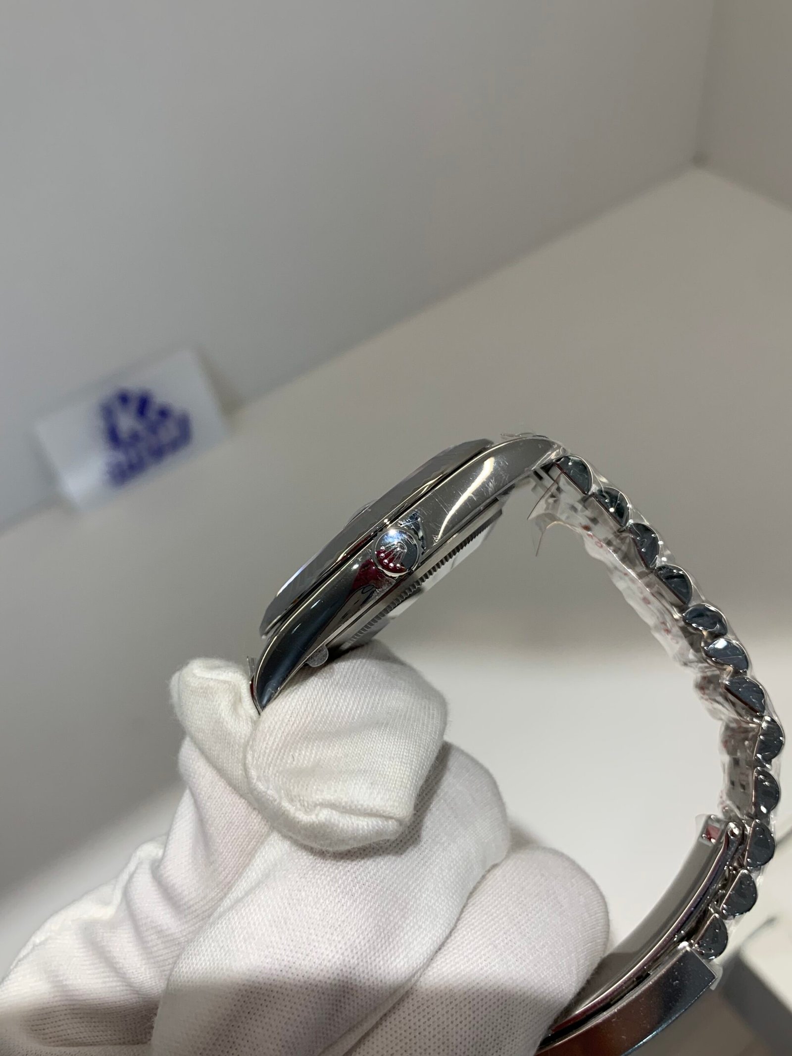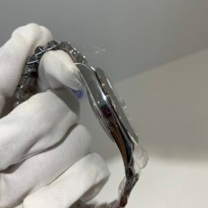 Crystal Clarity VSF is unrivaled in crystal production. The scratch-resistant sapphire is incredibly clear, with no milky ring effect (white edge) and correct internal AR coating, making the silver sunburst dial pop in any lighting. The crystal’s domed shape and date magnifier are true to genuine, with precise edge polishing, ensuring optimal readability in all environments while complementing the white gold details—consistent with the genuine’s anti-reflective and scratch-resistant standards.
