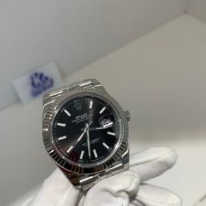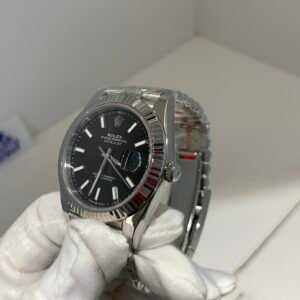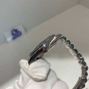 Polished 18K White Gold Fluted Bezel A classic fluted bezel crafted from 18K white gold, perfectly polished to a mirror shine—an iconic Rolex signature. Originally designed for functional waterproofing (to screw the bezel onto the case securely), the fluting now serves as a distinguished aesthetic element, framing the silver sunburst dial elegantly without distraction and maintaining the correct curvature relative to the mid-case, matching the genuine’s proportions exactly.