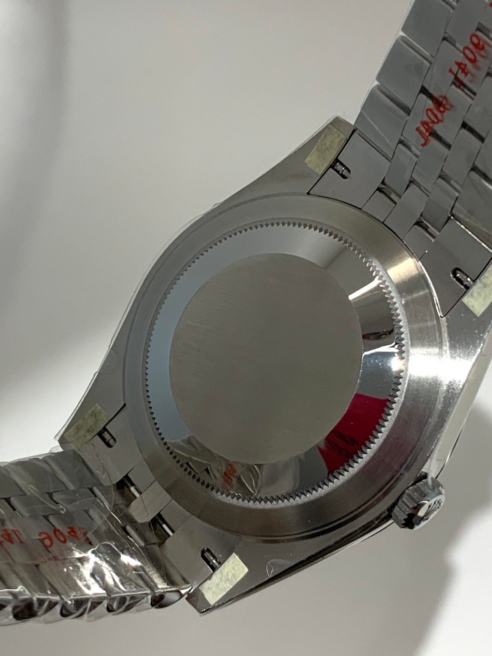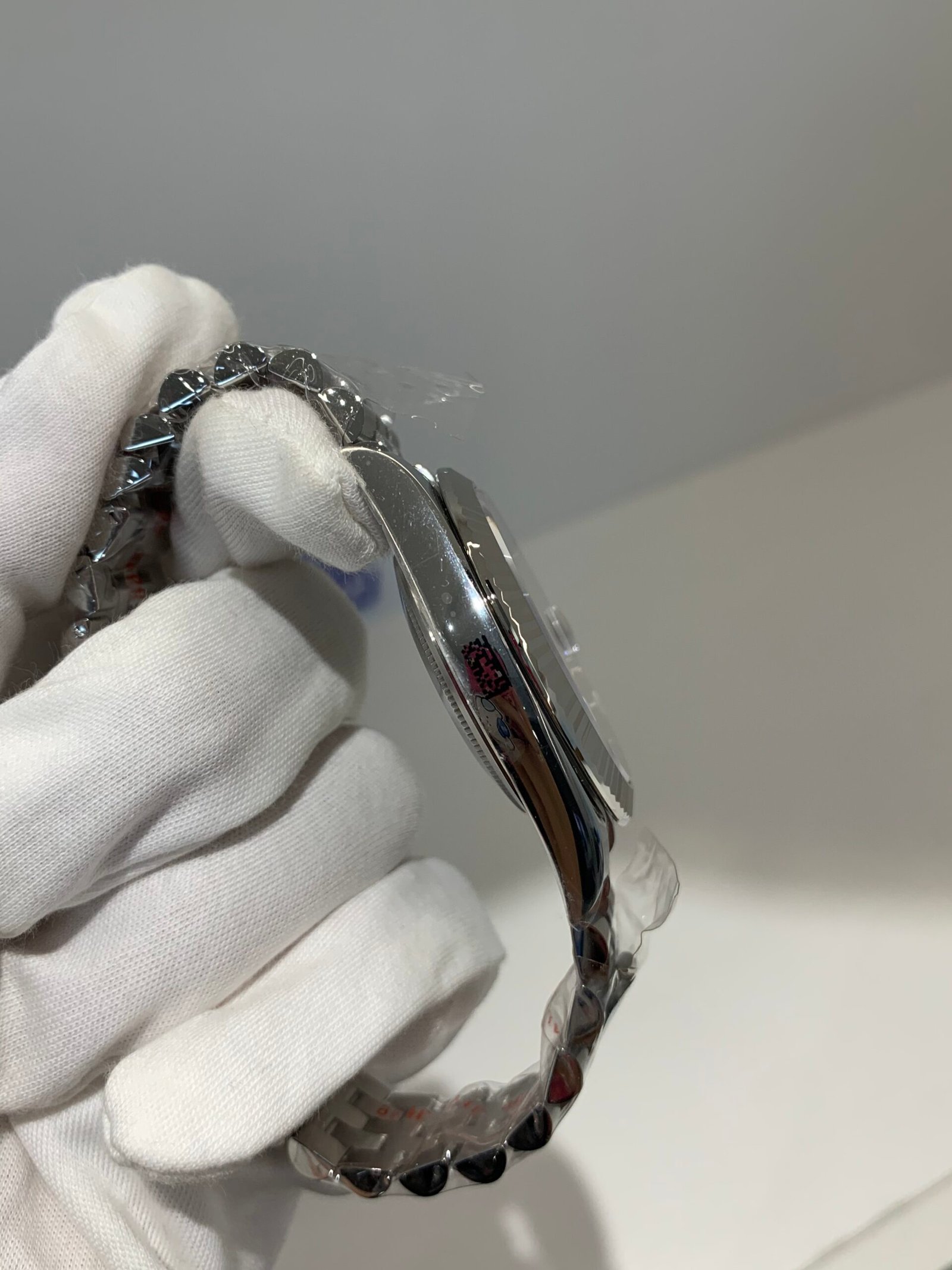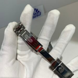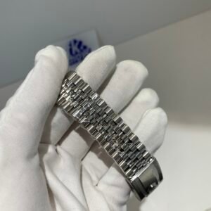 18K White Gold & 904L Oystersteel Finish VSF continues its dominance in case machining. The combination of 18K white gold (cool metallic tone, true to genuine) and 904L stainless steel—known as White Rolesor, a iconic Rolex blend of nobility and strength—features industry-leading brushing on the steel lugs and polished white gold accents, with a buttery smooth Jubilee bracelet taper that feels identical to the genuine article on the wrist. The bracelet clasp is perfectly finished, with seamless engagement and correct branding, blending luxury refinement and durability seamlessly.