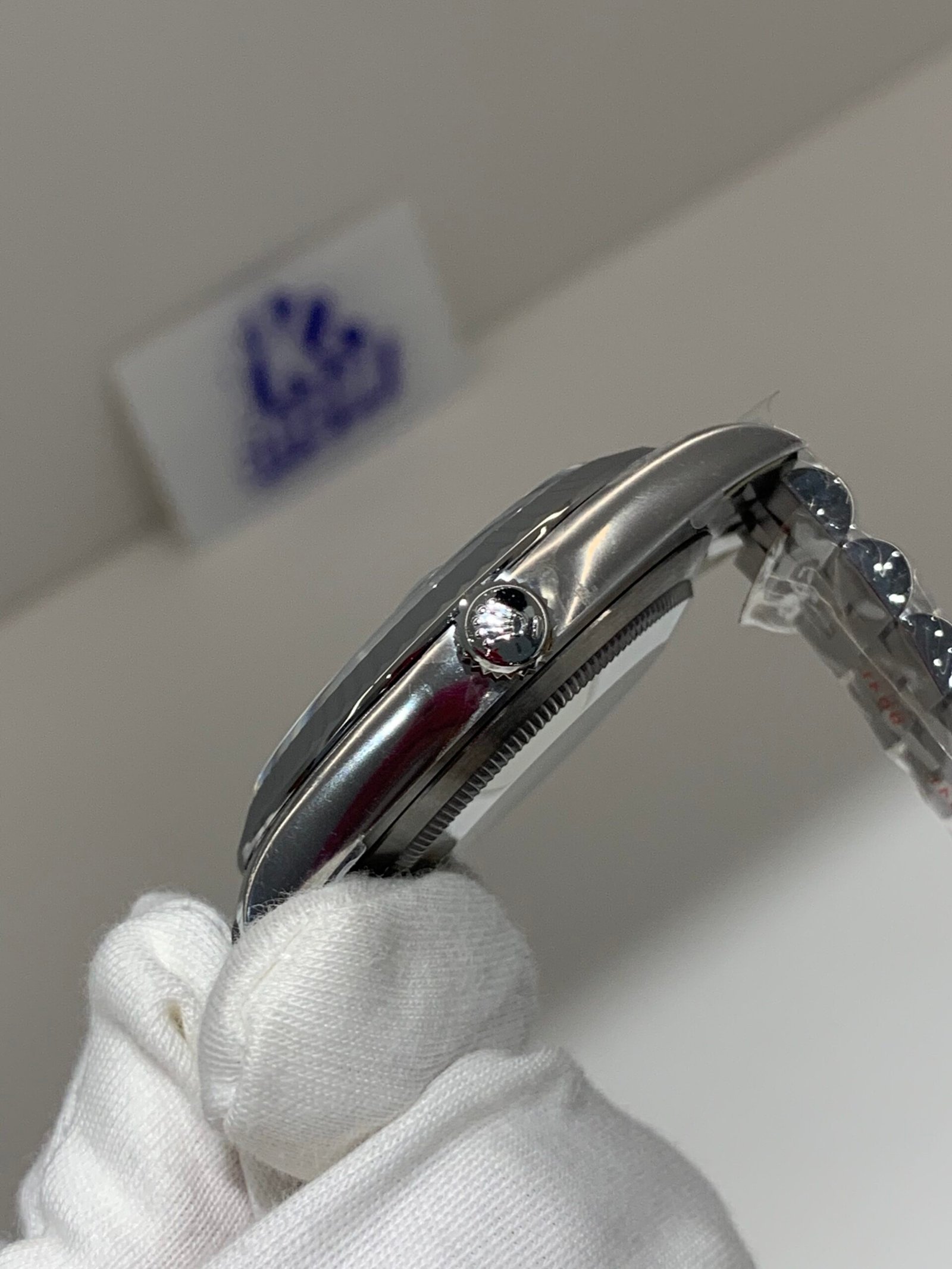 Crystal Clarity VSF is unrivaled in crystal production. The sapphire is incredibly clear, with no milky ring effect (white edge) and correct internal AR coating, making the slate grey dial pop in any lighting. The crystal’s domed shape and date magnifier are true to genuine, with precise edge polishing.