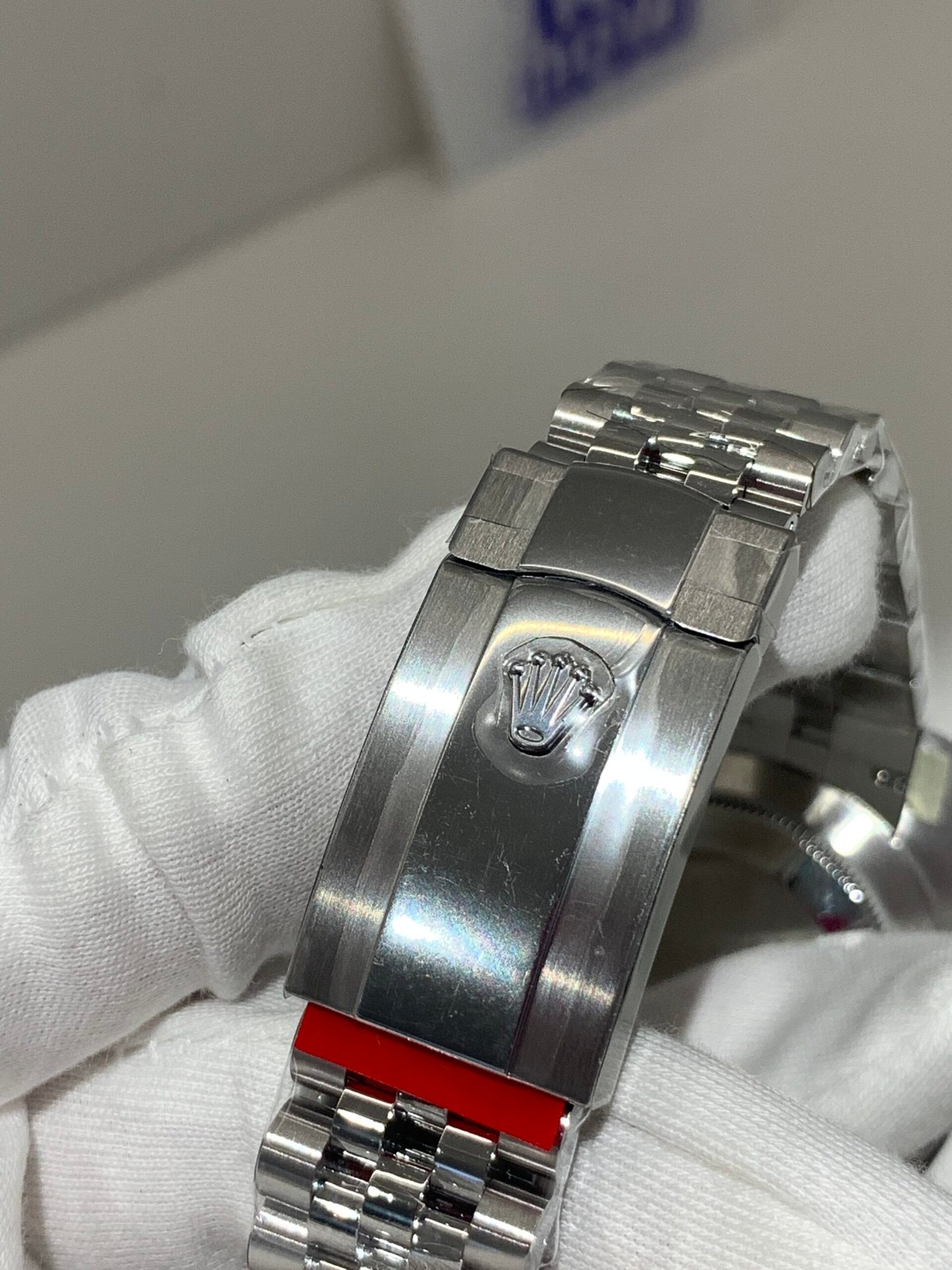 18K Everose Gold & 904L Oystersteel Finish VSF continues its dominance in case machining. The combination of 18K Everose gold (warm rose tone, true to genuine) and 904L stainless steel features industry-leading brushing on the steel lugs and polished rose gold accents, with a buttery smooth bracelet taper that feels identical to the genuine article on the wrist. The bracelet clasp is perfectly finished, with seamless engagement and correct branding.