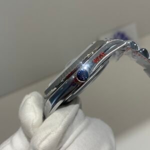 Polished 18K White Gold Smooth Bezel A classic smooth domed bezel crafted from 18K white gold, perfectly polished to a mirror shine. It frames the black dial elegantly without distraction and maintains the correct curvature relative to the mid-case, matching the genuine’s proportions exactly.