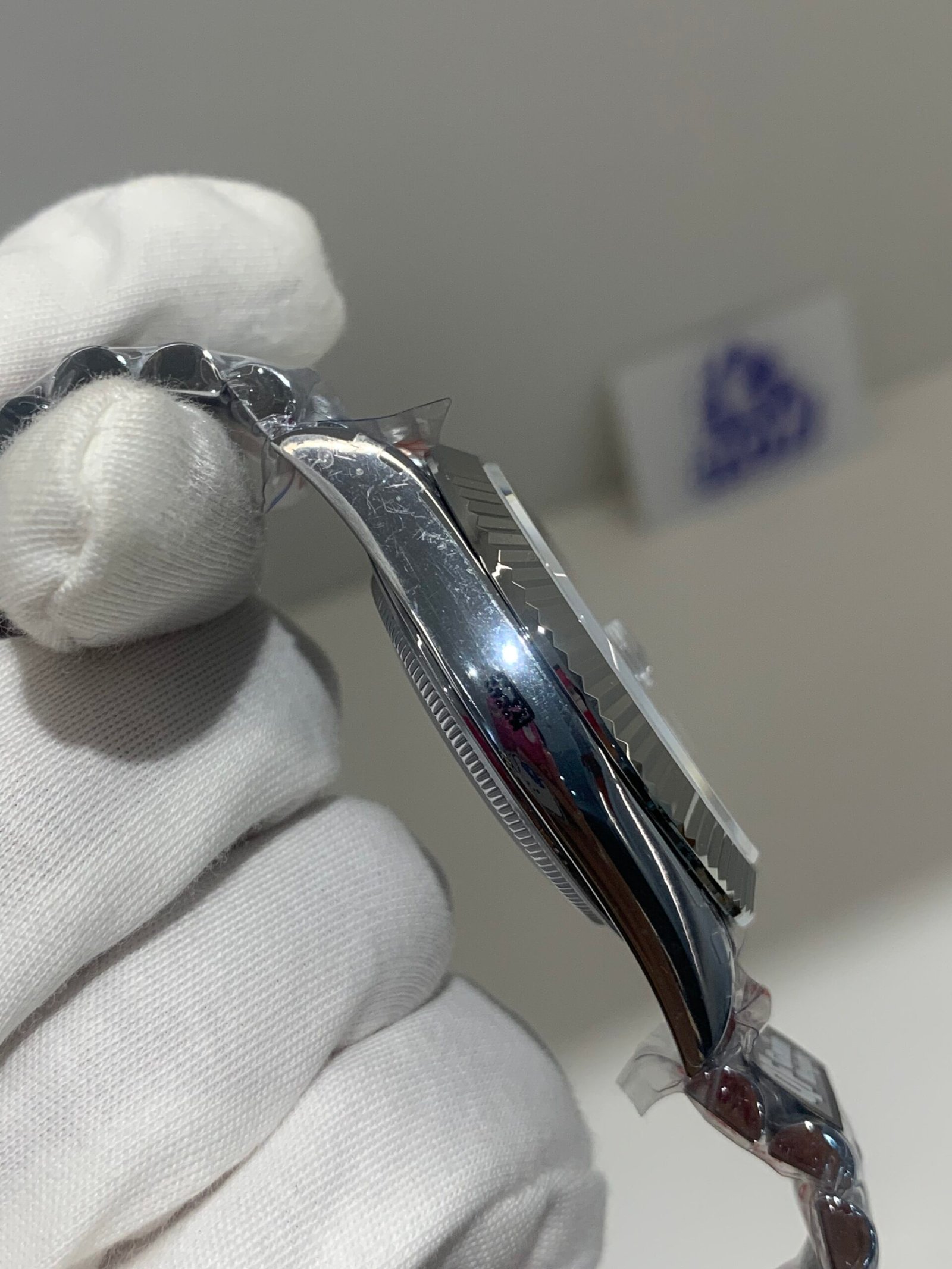 Crystal Clarity VSF is unrivaled in crystal production. The sapphire is incredibly clear, with no milky ring effect (white edge) and correct internal AR coating, making the black dial and diamond markers pop in any lighting. The crystal’s domed shape is true to genuine, with precise edge polishing.