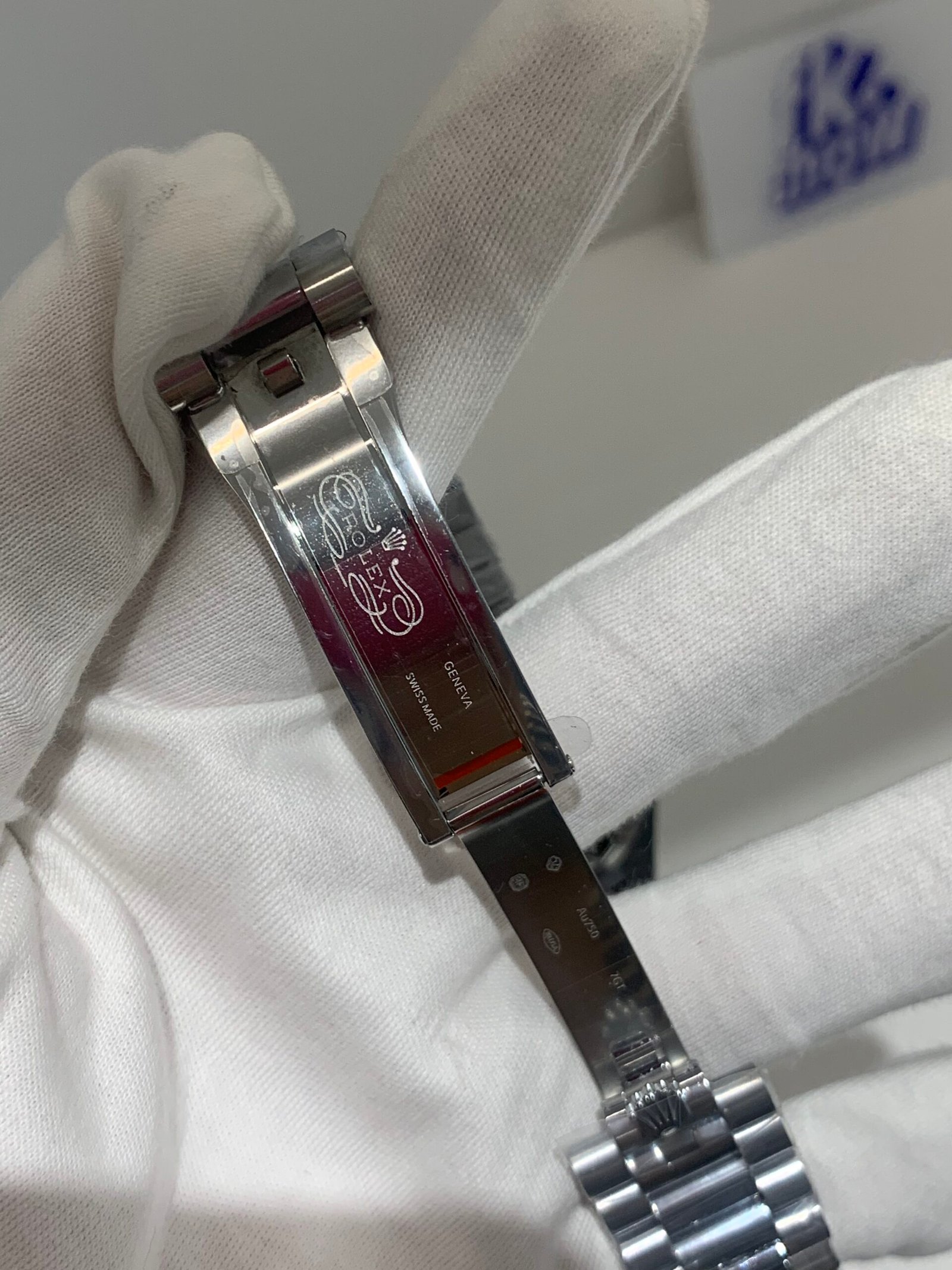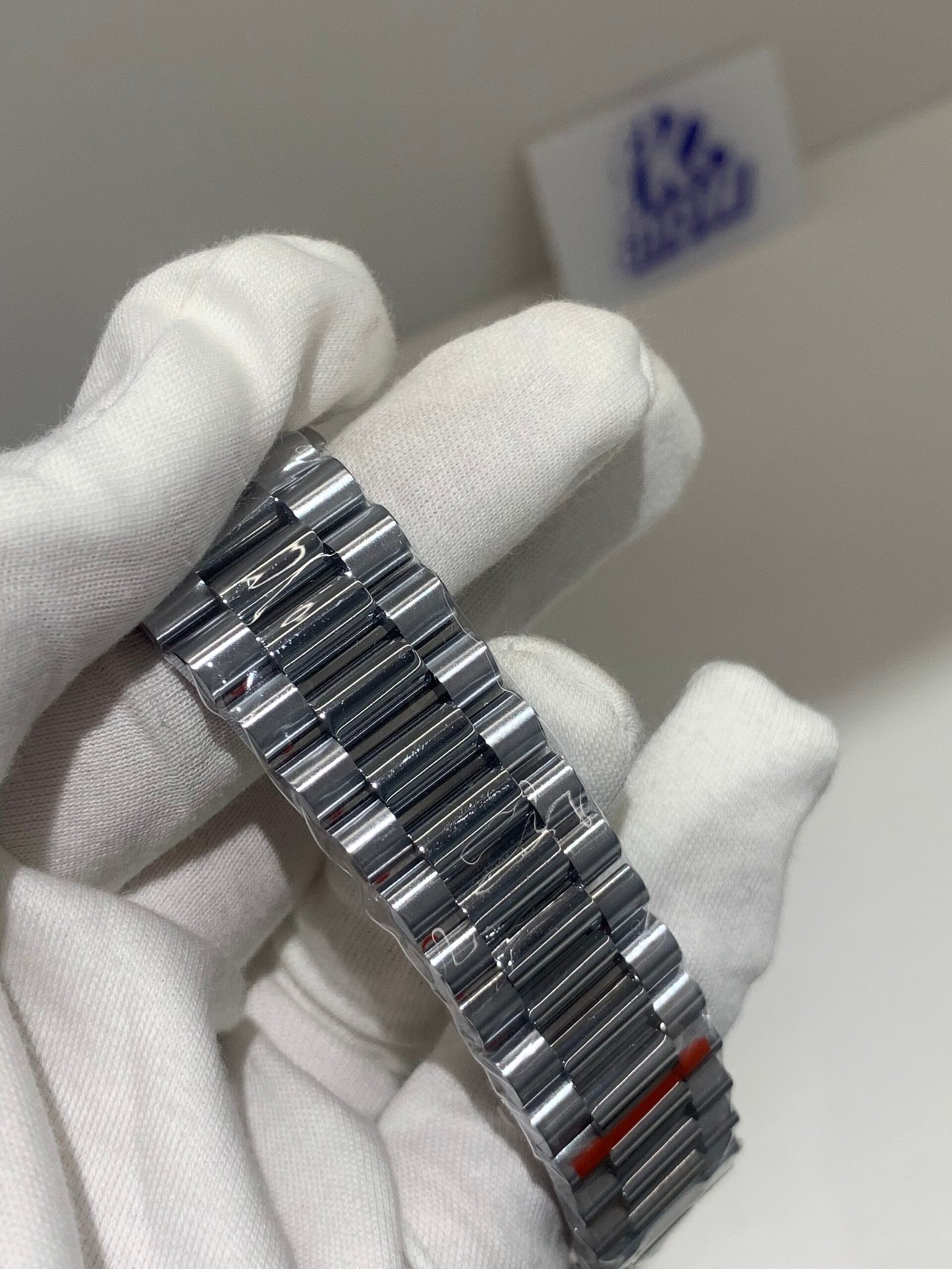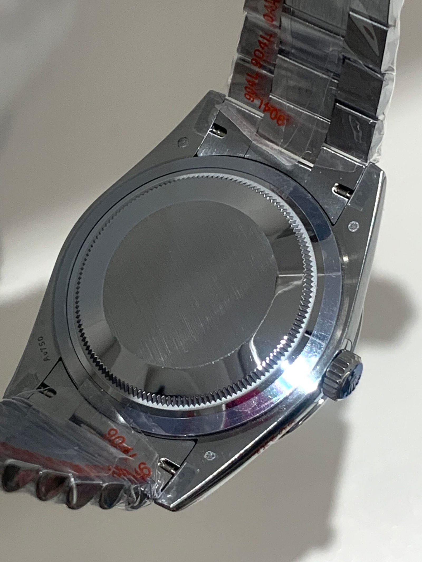 18K White Gold & 904L Oystersteel Finish VSF continues its dominance in case machining. The combination of 18K white gold (cool metallic tone, true to genuine) and 904L stainless steel features industry-leading brushing on the steel lugs and polished white gold accents, with a buttery smooth bracelet taper that feels identical to the genuine article on the wrist. The bracelet clasp is perfectly finished, with seamless engagement and correct branding.