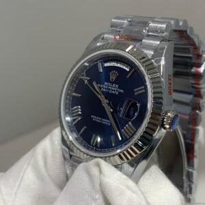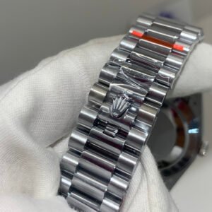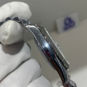 Black Dial with Diamond Hour Markers The black base is sleek and sophisticated, but the real star is the diamond hour markers. VSF has selected high-quality, evenly cut diamonds that match the genuine’s size and brilliance, set in 18K white gold bezels for a luxurious finish. The day and date windows are perfectly aligned, with crisp white printing that’s true to the original.