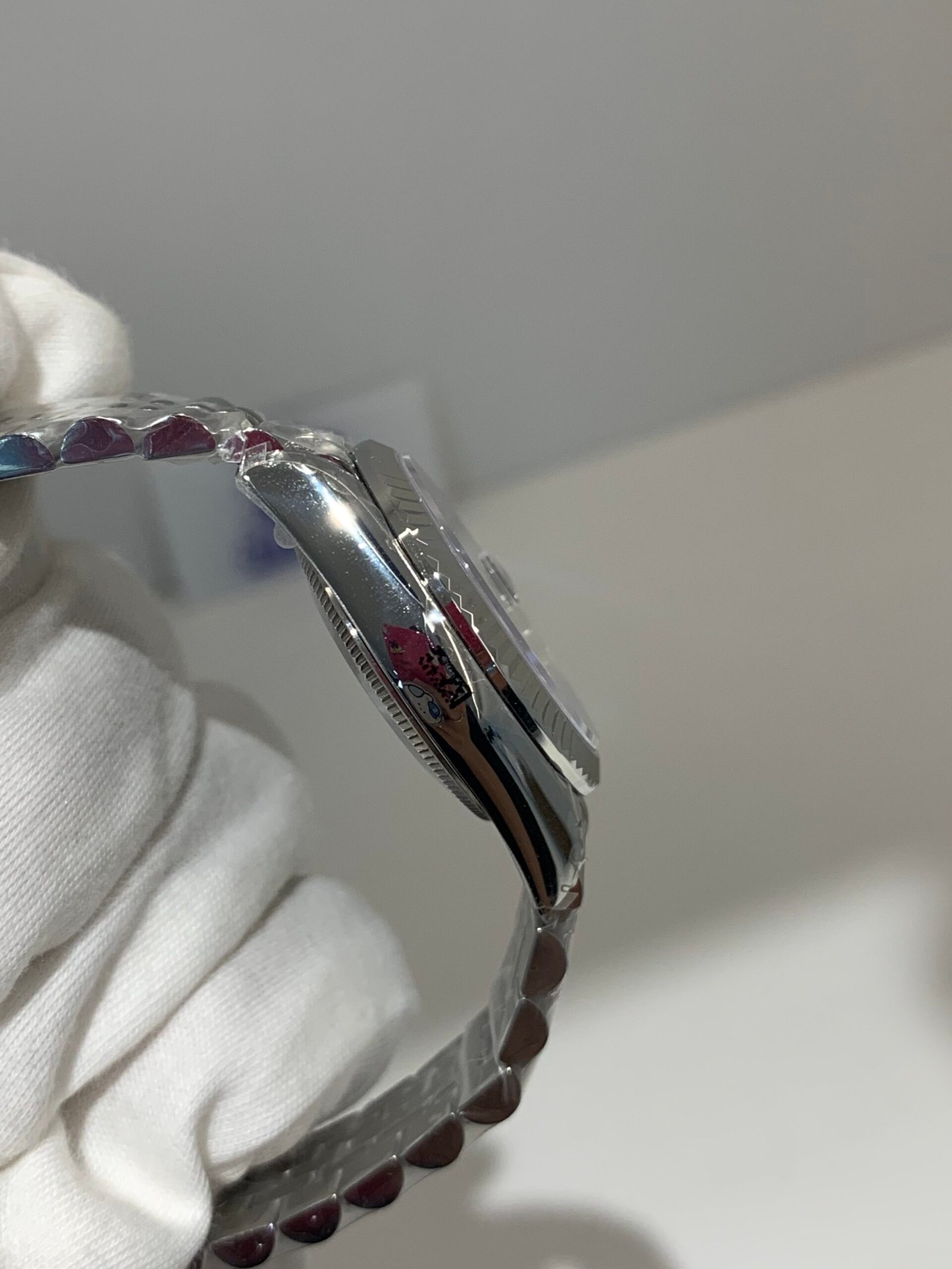 Crystal ClarityVSF is unrivaled in crystal production. The sapphire crystal is incredibly clear, with no milky ring effect (white edge) and correct internal AR coating, while the Cyclops lens at 3 o’clock magnifies the date window with 2.5x clarity—mirroring the genuine’s design and ensuring the pink dial’s soft color and sunburst texture pop in any lighting. The dial’s diamond-set indices, luminous filling, and the white gold bezel’s luster are all crafted to 1:1 precision, capturing every delicate detail of the original feminine design.