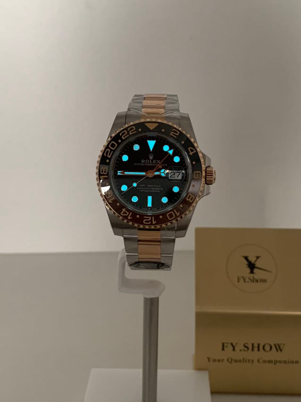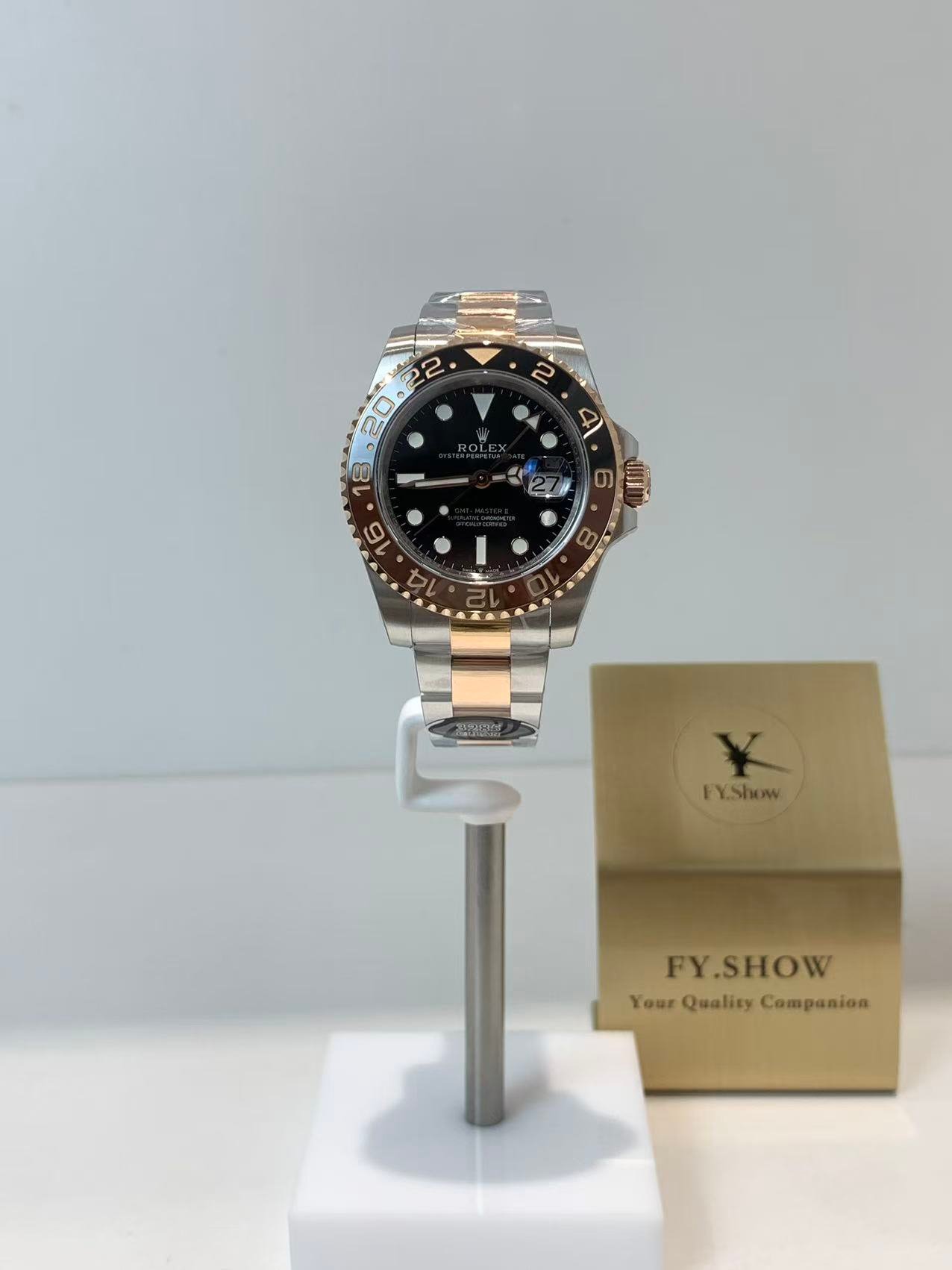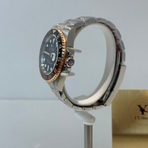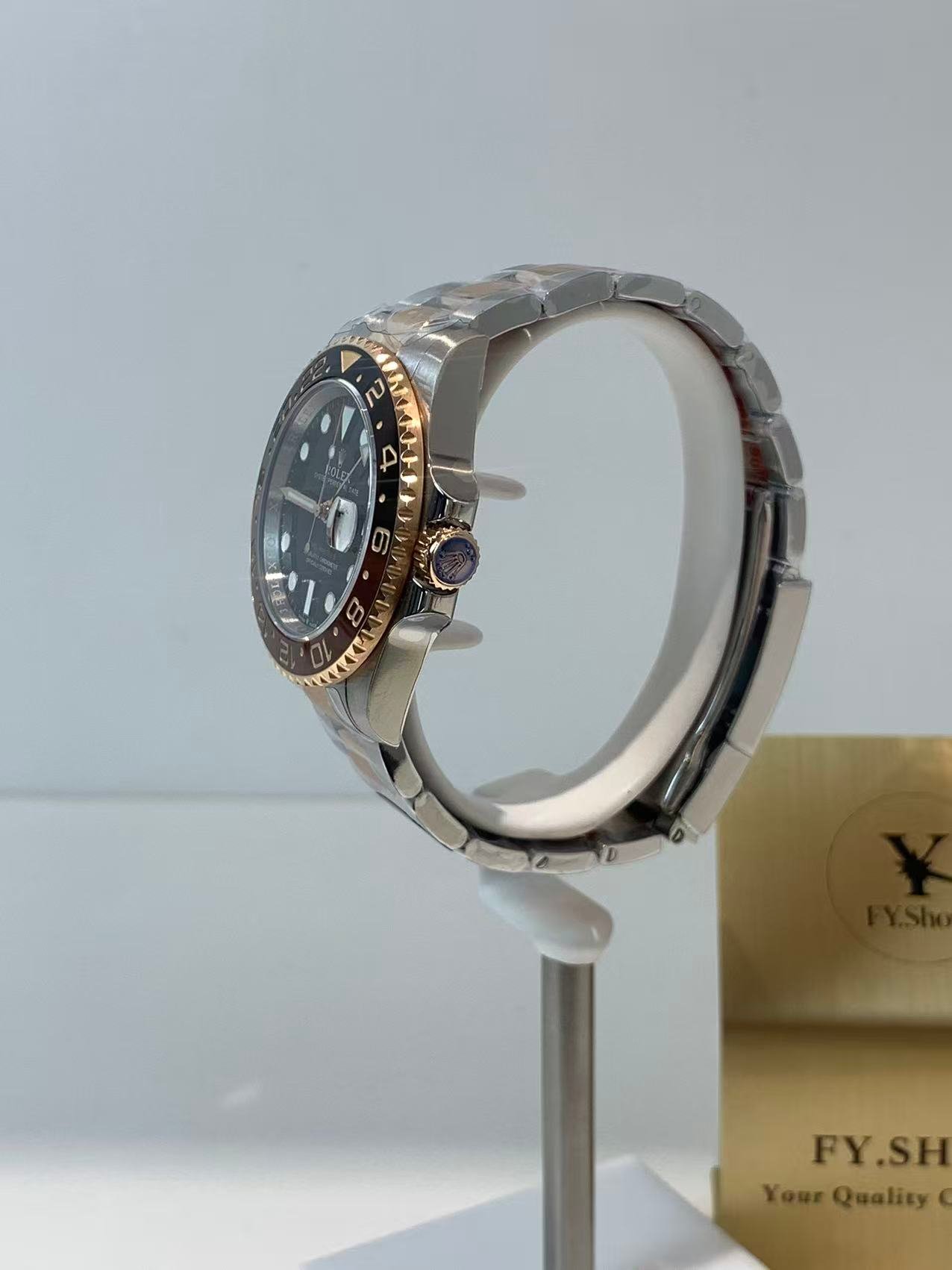 This is the ultimate versatile timepiece that collectors and travelers adore. Unlike full-steel variants, the 116711LN features a sophisticated two-tone construction of 904L Oystersteel and 18k Everose gold, offering both durability and elegance. The Cal.3186 movement delivers precise dual-time functionality, with an independent 24-hour GMT hand that can be adjusted without disrupting the main time or seconds—mirroring the genuine’s seamless operation.