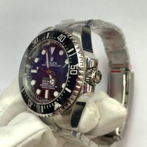 18K Everose Gold & 904L Oystersteel FinishVSF continues its dominance in case machining. The combination of 18K Everose gold (bezel, crown, center links) and 904L stainless steel (case, outer bracelet links) features industry-leading polishing and brushing, with a buttery smooth bracelet taper that feels identical to the genuine article on the wrist, embodying the SEA-DWELLER’s luxury and corrosion resistance for deep diving.