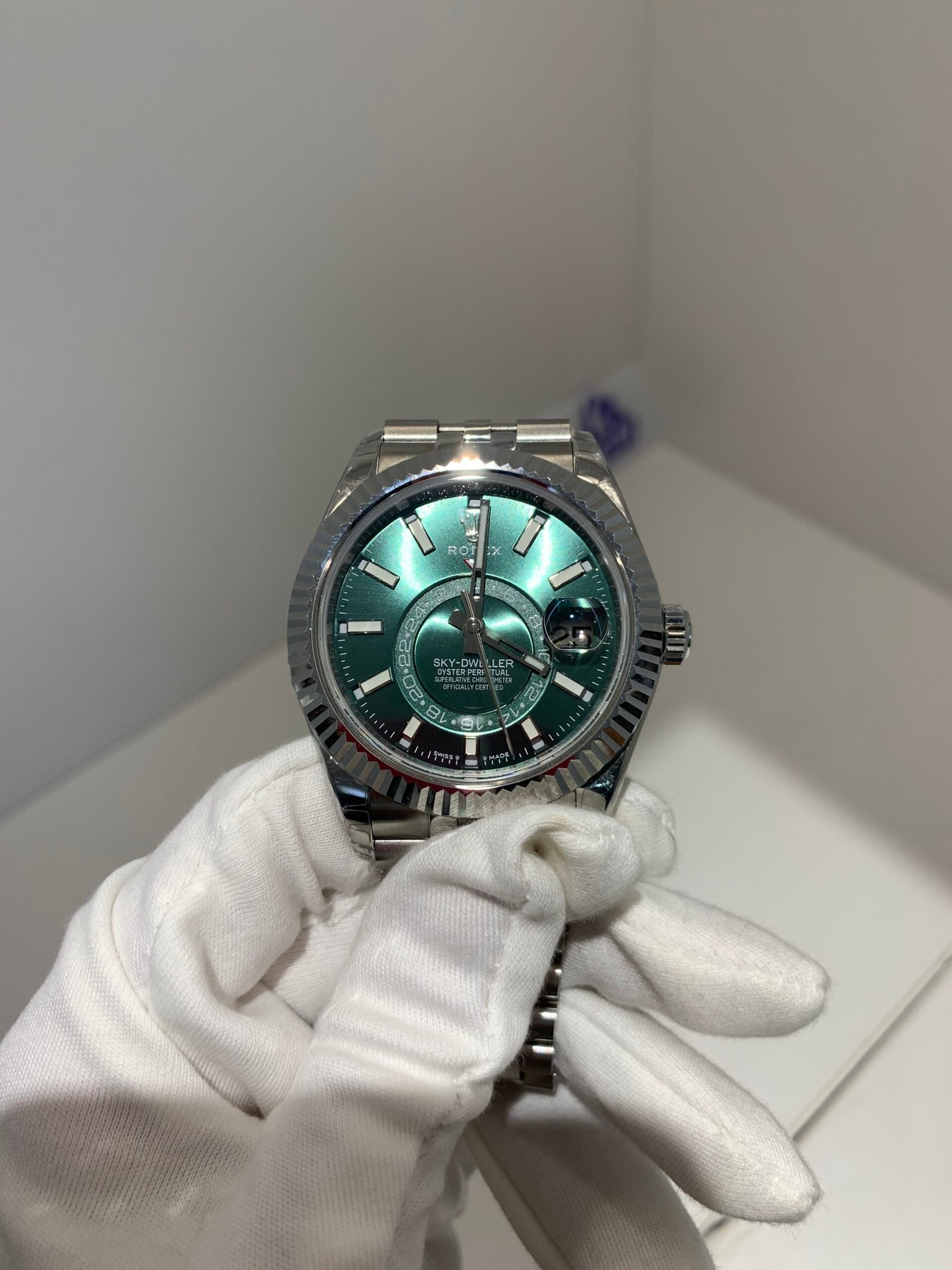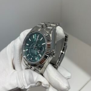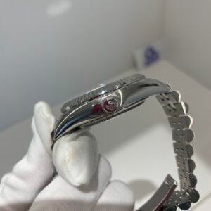 18K Everose Gold (Eternal Rose Gold) Case & Oyster BraceletVSF continues its dominance in case machining, perfectly replicating the genuine M336934-0001’s iconic 18K Everose gold craftsmanship—Rolex’s exclusive eternal rose gold alloy, which adds about 2% platinum to traditional rose gold (a blend of gold and copper) to ensure superior durability, luster retention and scratch resistance, avoiding fading over long-term wear and presenting a warm, elegant rose gold tone that exudes refined luxury. The case and Oyster bracelet are crafted with high-quality 18K Everose gold plating, featuring industry-leading brushing and polishing on the lugs and bracelet links, mirroring the genuine’s dense texture and luxurious luster. The Oyster bracelet (three-link design, a classic Rolex strap style renowned for its sturdiness and versatility) boasts a buttery smooth taper, paired with an Oysterlock safety clasp to prevent accidental opening, ensuring a comfortable and secure fit that feels identical to the genuine article—luxurious and wear-resistant for long-term use, perfectly interpreting Rolex’s pursuit of exquisite craftsmanship and humanized design.