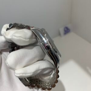 Crystal ClarityVSF is unrivaled in crystal production. The sapphire crystal is incredibly clear, with no milky ring effect (white edge) and correct internal AR coating, ensuring the silver-gray dial’s cool luster, the diamond markers’ bright fire, and the “DAYTONA” red lettering pop in any lighting. The crystal’s flat profile matches the genuine’s design, while the luminous filling on the hands, the 18K Everose gold bezel’s luster, the silver-gray dial’s texture, and the diamond inlays’ details are all crafted to 1:1 precision—capturing every detail of the original’s luxurious and elegant design, and highlighting the perfect fusion of precious eternal rose gold, rare diamonds and sporty chronograph functionality.