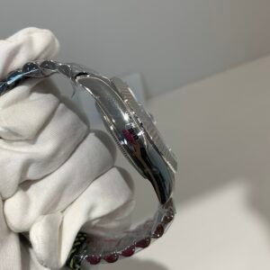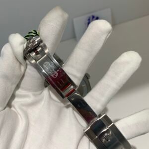 A fully polished, mirror-finish bezel with cleanly engraved white tachymeter scale. It holds perfect curvature relative to the mid-case and frames the dial with understated luxury.