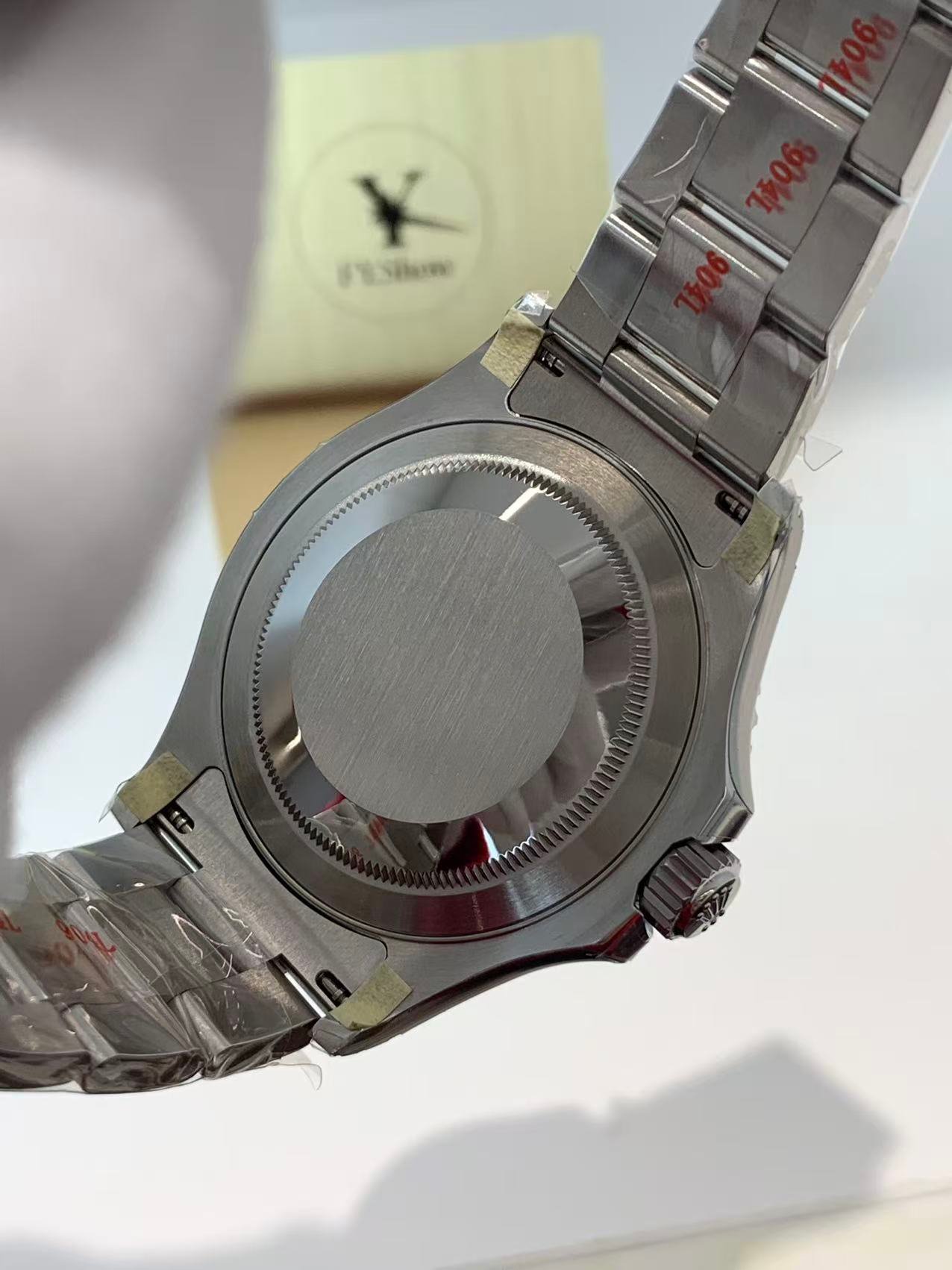 VSF retains its industry-leading edge in case and bracelet machining for this Yacht-Master 126622. Crafted from solid 904L Oystersteel (same grade as genuine Rolex), the entire case features precision brushing and polishing that matches the genuine finish perfectly. The 40mm oyster case has correct proportions, lug curvature, and case thickness, sitting flush on the wrist just like the authentic model. The signature Rolesium combination (Oystersteel + 950 platinum bezel) is flawlessly replicated, with the platinum bezel retaining the genuine matte frosted finish and raised polished numerals that resist scratches and maintain luster.