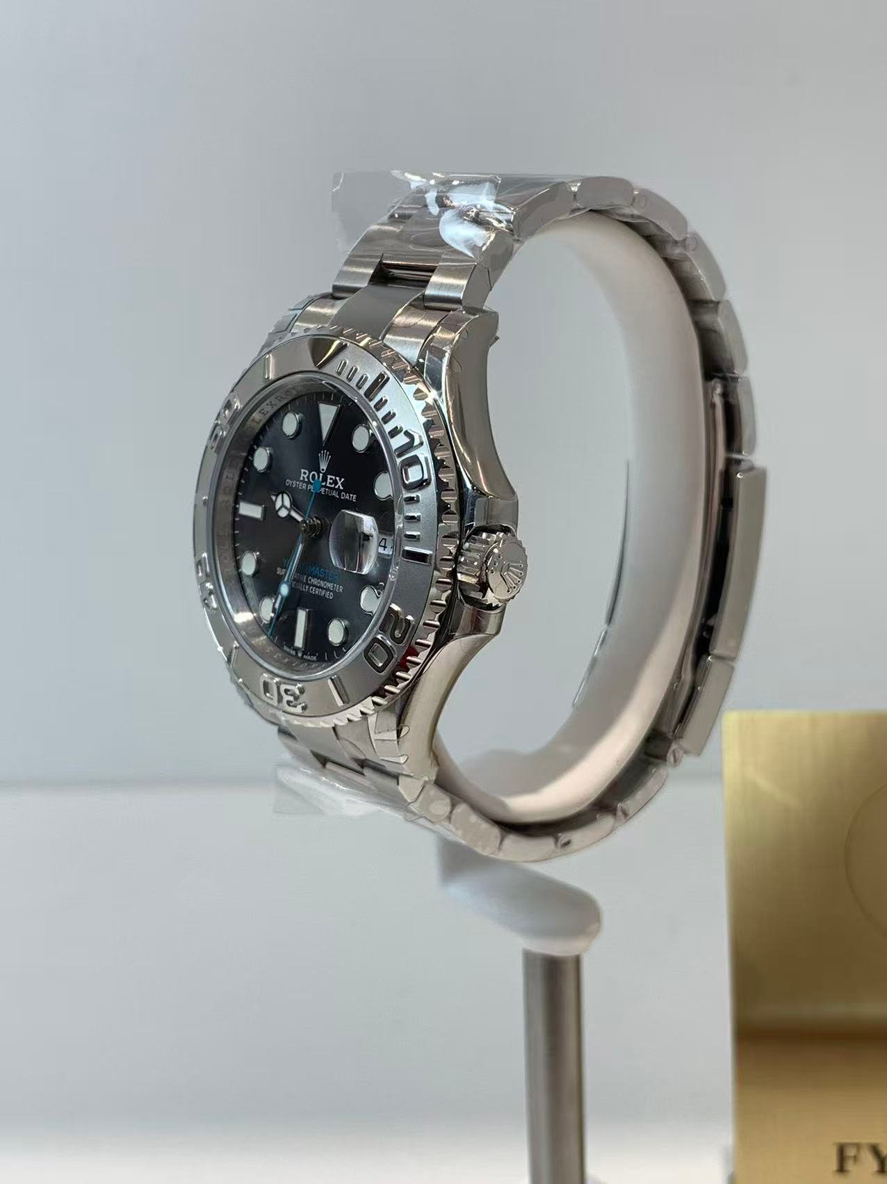 This is the benchmark Yacht-Master replica enthusiasts have been waiting for. Ditching generic modified movements for the dedicated VS3235 automatic mechanical movement — a 1:1 super clone of the genuine Rolex Cal.3235 — this version delivers full functional parity with the original. Every mechanism aligns perfectly with the genuine article: smooth crown operation, correct 3-position crown function (winding, date setting, time setting), instant quick-set date at 3 o’clock, and zero functional flaws that plague lower-tier replicas. The winding feel, time adjustment resistance, and overall movement responsiveness mirror the genuine handling experience down to the finest detail.