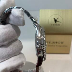 The oyster bracelet is a masterclass in replication: three-piece flat links with consistent brushing, seamless taper, and buttery-smooth link articulation. Fitted with the genuine-style Oysterlock safety clasp and fully functional Easylink 5mm comfort extension system, allowing quick, tool-free fit adjustments for all wrist sizes — a detail most replica factories skip entirely.