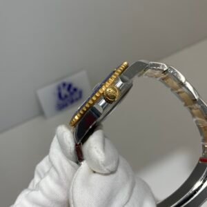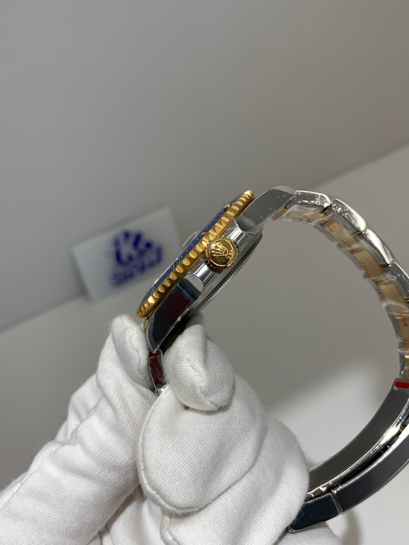Standard two-tone replicas feel too light because steel is lighter than gold. VSF solves this with Tungsten technology, creating the first “Bluesy” that feels 100% real on the wrist.