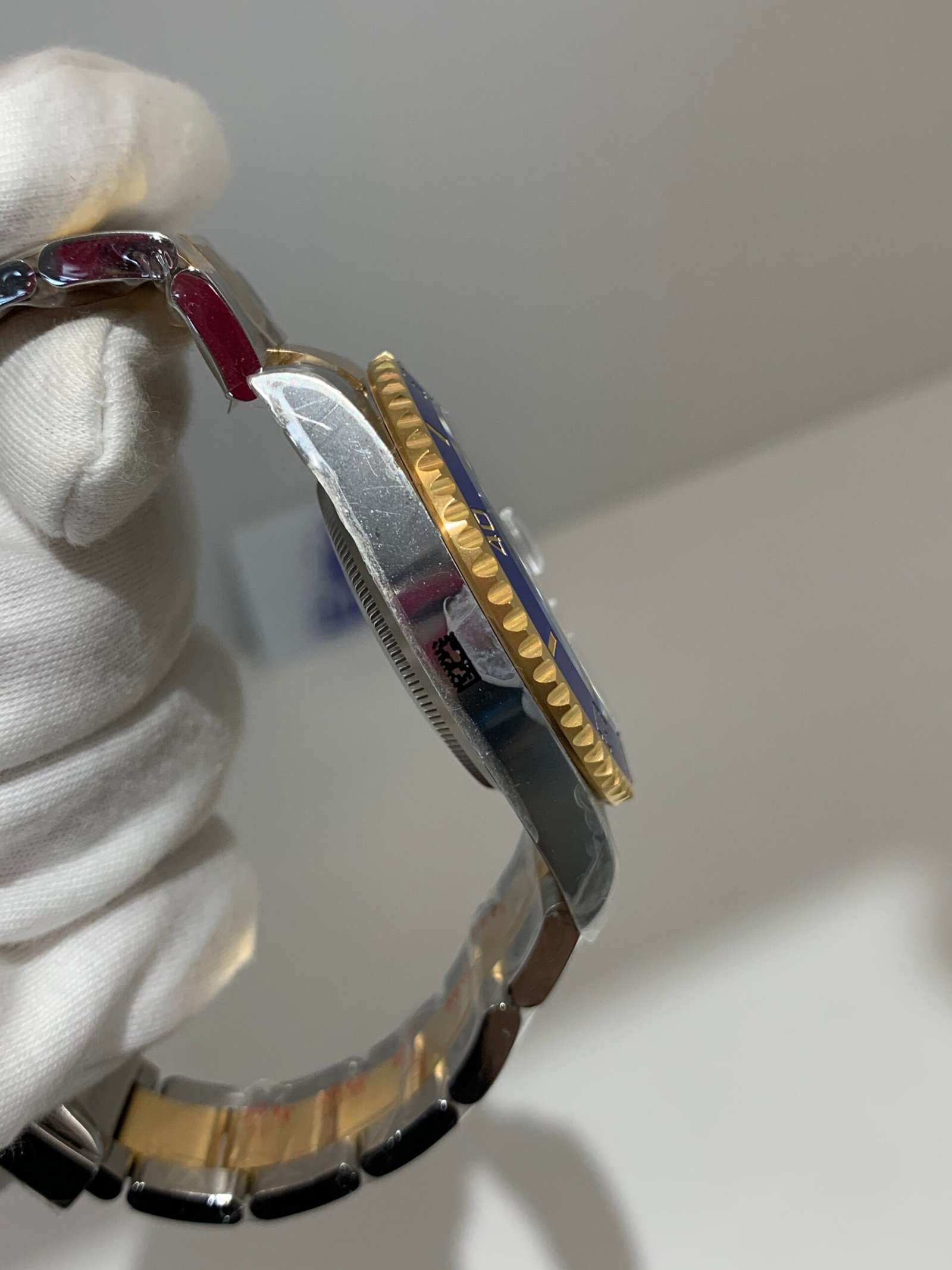 Cerachrom & GoldBlue Cerachrom ceramic insert with PVD Gold coated numerals. The bezel teeth are sharp and plated in 18k gold. The rotation sound is crisp and gen-like.