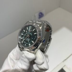 Rolex Sky-Dweller, a luxury travel watch with a range of features, is ideal for frequent travelers. The Green dial of the Rolex Sky-Dweller M336934 Super Clone Watches gives it a stylish appearance.